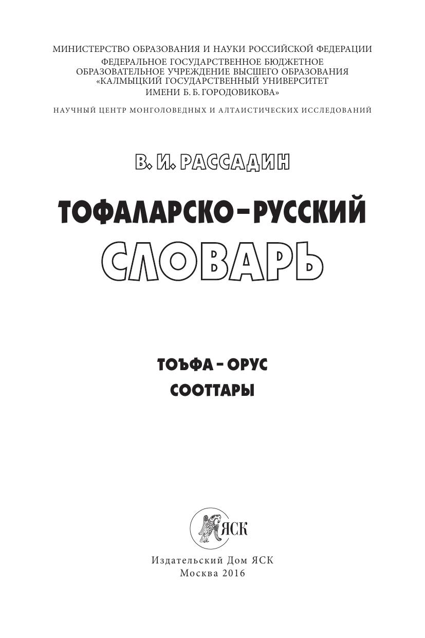 Тофаларско-русский словарь