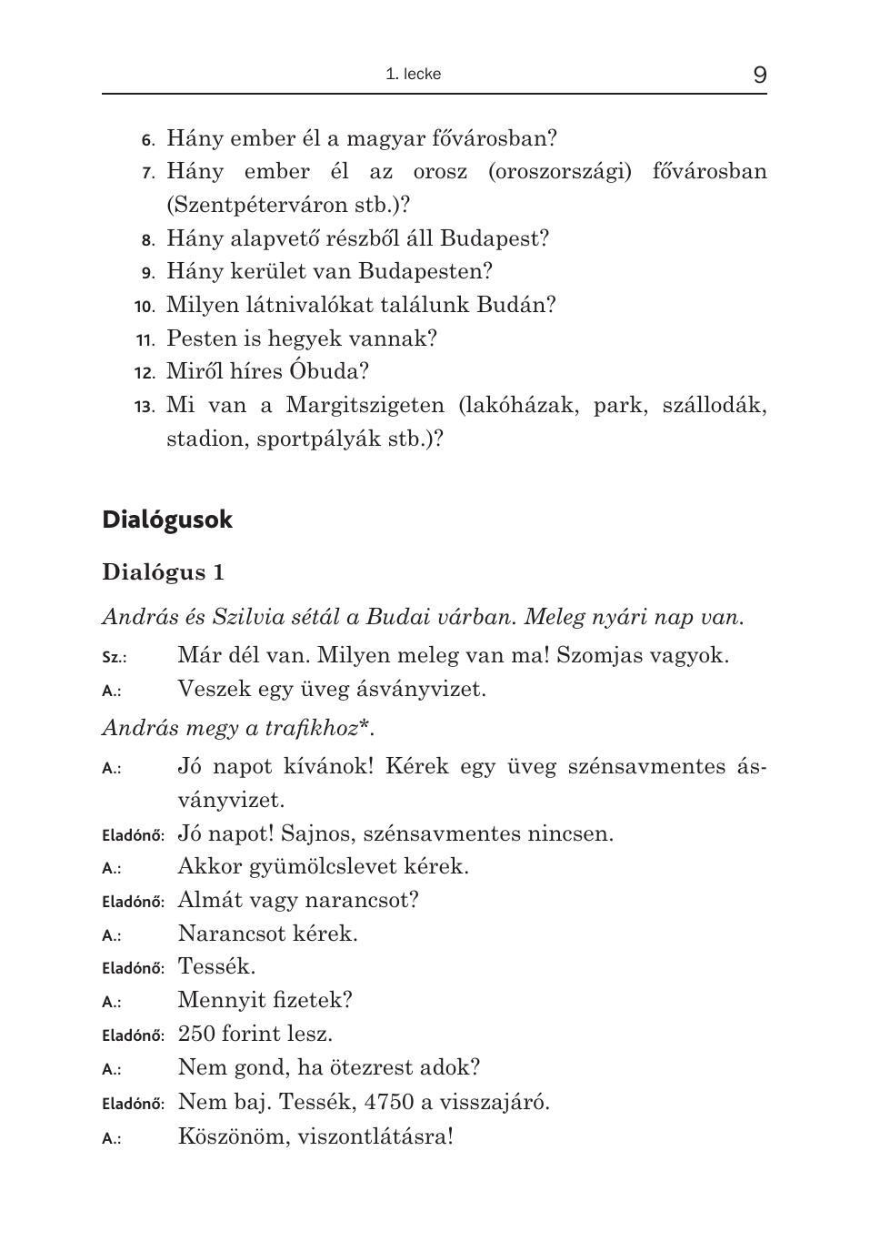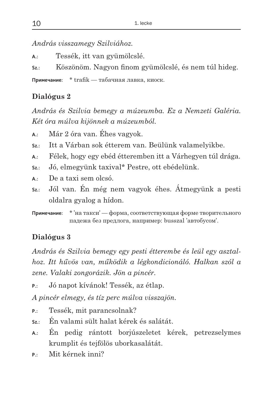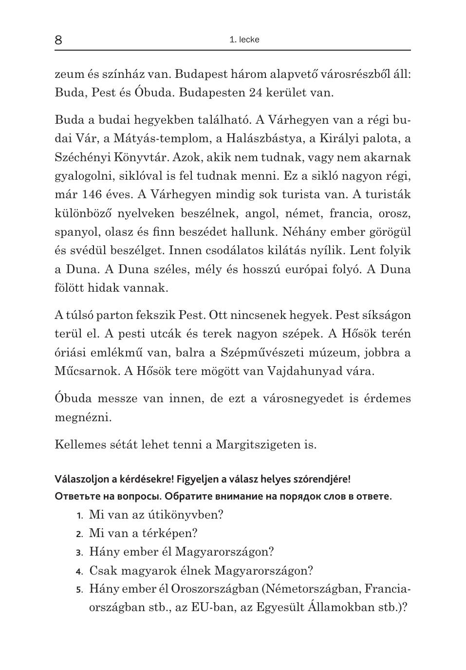 Пособие адресовано как самостоятельно обучающимся венгерскому языку, так и тем, кто изучает язык под руководством преподавателя. Учащиеся, которые только начали осваивать базовый курс венгерского языка, могут использовать книгу параллельно с основным учебником как дополнительное пособие. Книга содержит 15 уроков. Материал уроков располагается по степени возрастания сложности грамматических тем. Каждый урок включает тексты и диалоги, представляющие собой в основном образцы венгерской разговорной речи, фразеологизмы, а также шутки и анекдоты. Пособие насыщено страноведческой информацией и дает возможность ближе познакомиться с культурой и историей Венгрии. Задания и упражнения составляют небольшую часть урока. В случае необходимости дается грамматический или иной комментарий. В конце каждого урока дается перевод текстовых материалов и ключи. Пособие поможет учащемуся развить разговорные навыки, повторить основы грамматики и расширить словарный запас.