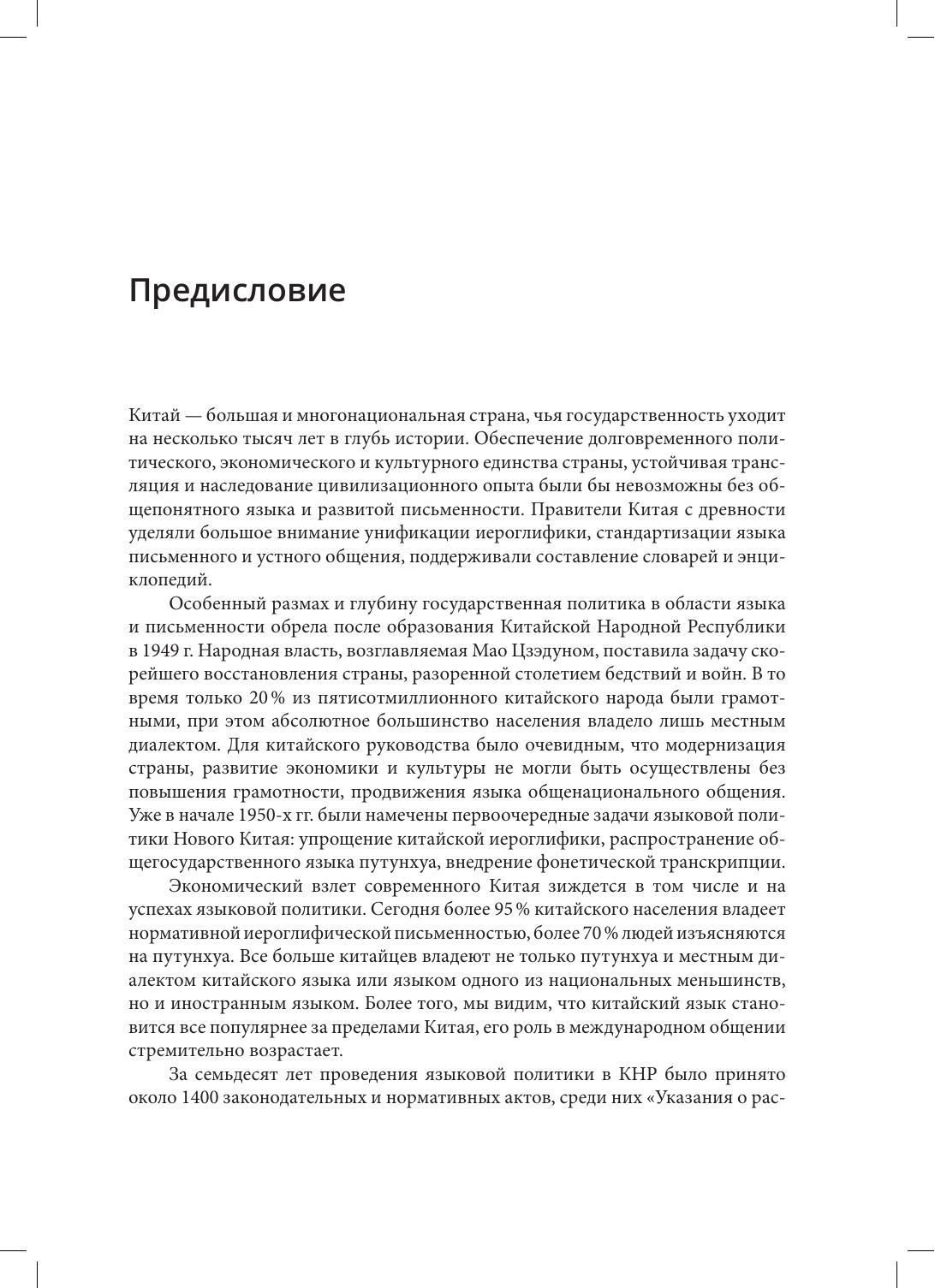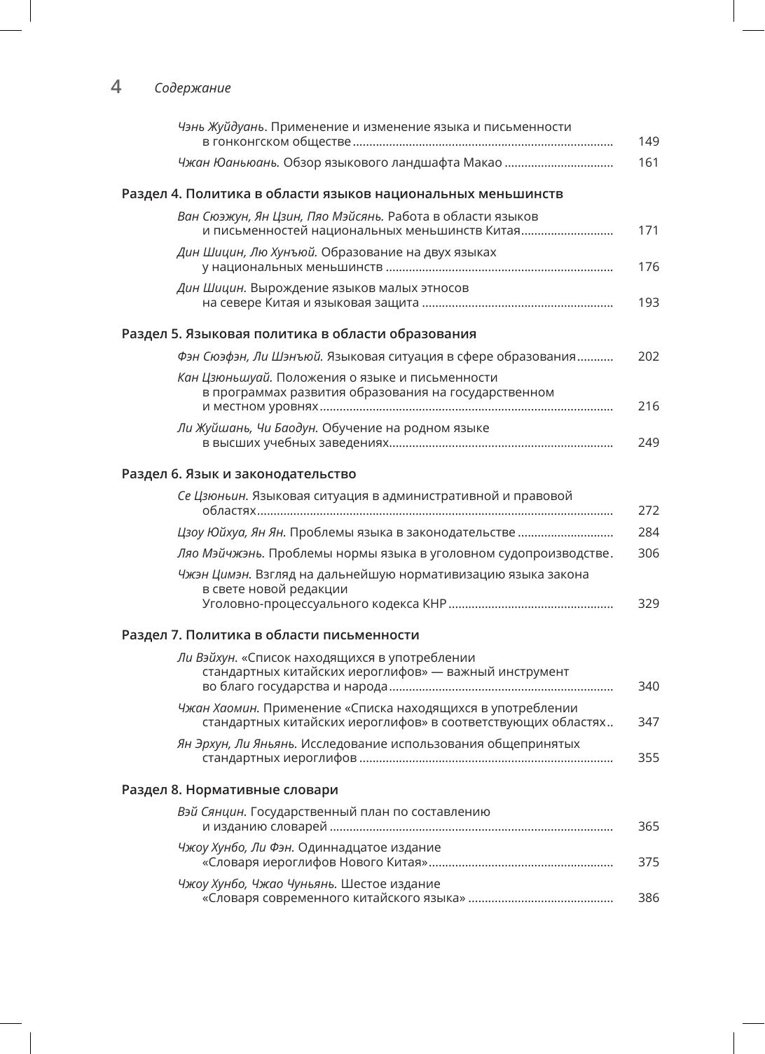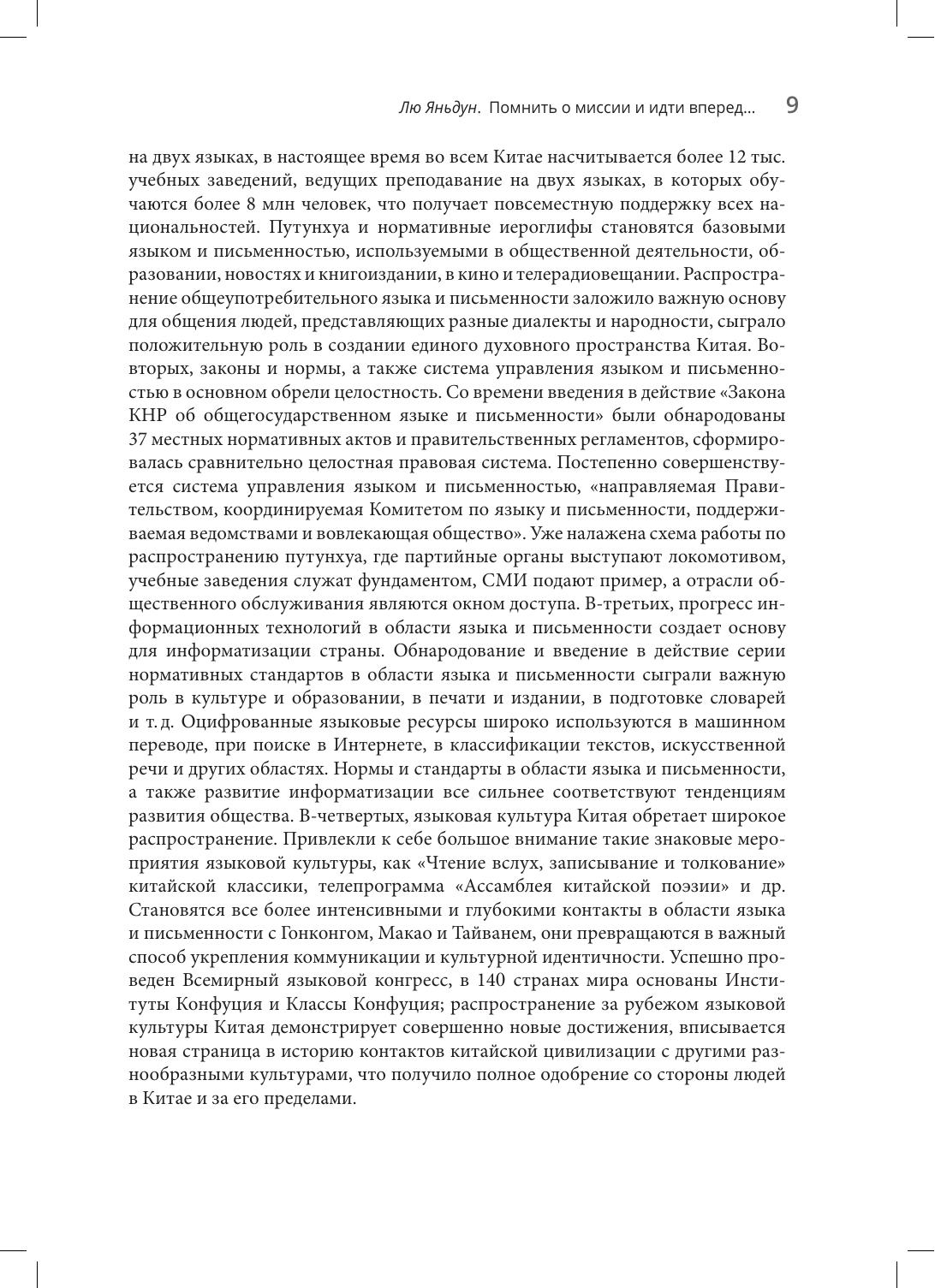 В сборник, подготовленный при участии Государственного комитета КНР по работе в области языка и письменности, вошли 34 статьи и выступления китайских ученых и государственных деятелей, посвященные проблемам языковой политики КНР, опубликованные в разные годы в ежегоднике "Доклады о языковой ситуации в Китае". Впервые на русском языке доступны материалы, дающие целостное представление о направлениях, этапах и результатах языковой политике Китая, в частности о мерах по продвижению общегосударственного языка путунхуа, по защите диалектов китайского языка и языков национальных меньшинств, о роли лексикографии в закреплении языковых норм, о проблемах использования нормативного языка в законодательной деятельности и судопроизводстве.