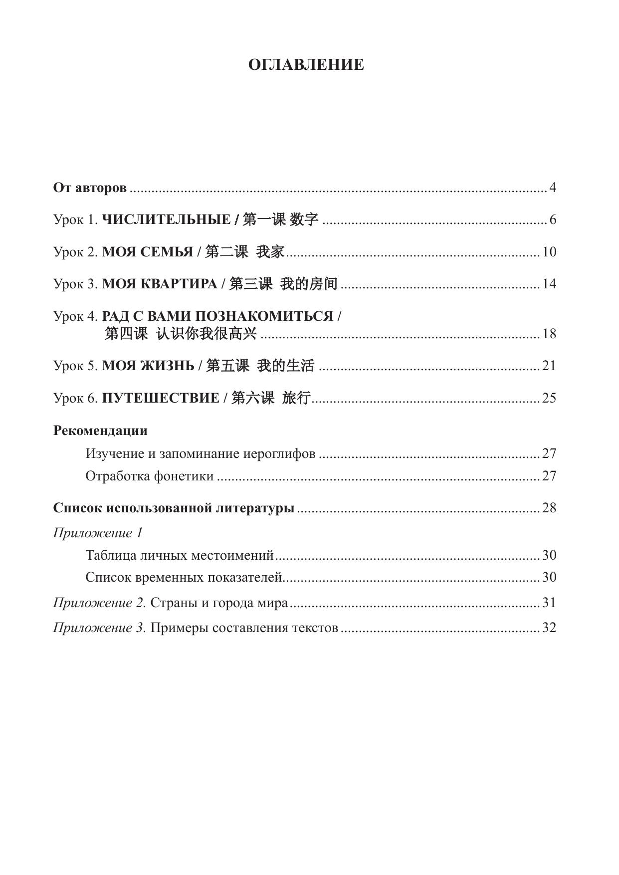В учебно-методическом пособии представлен материал для шести уроков, включающий тексты и упражнения, направленные на формирование навыков устной и письменной речи, а также комментарии по фонетике китайского языка, анализ основных фонетических, иероглифических и грамматических ошибок. Для студентов, изучающих основной курс китайского языка на начальном уровне.