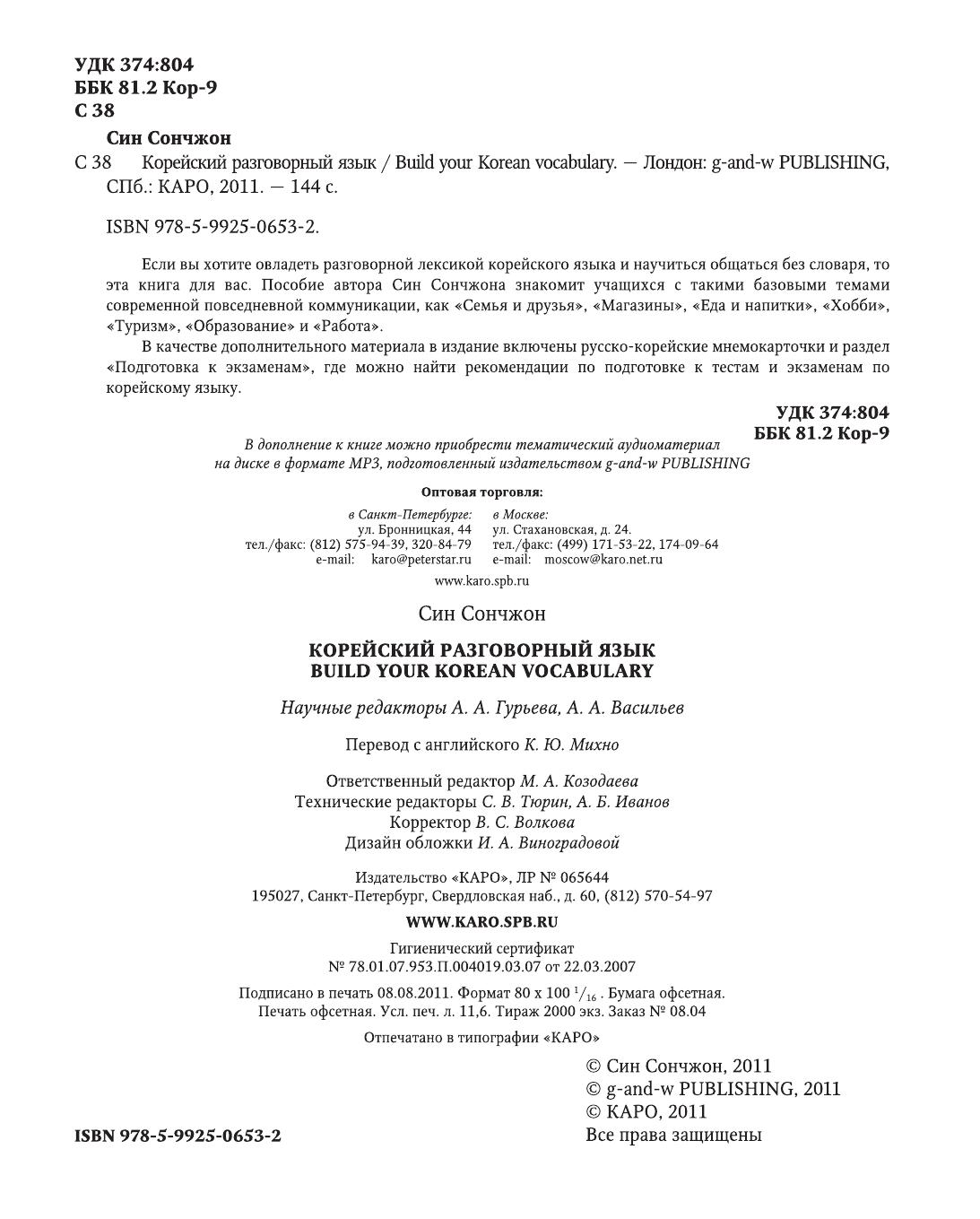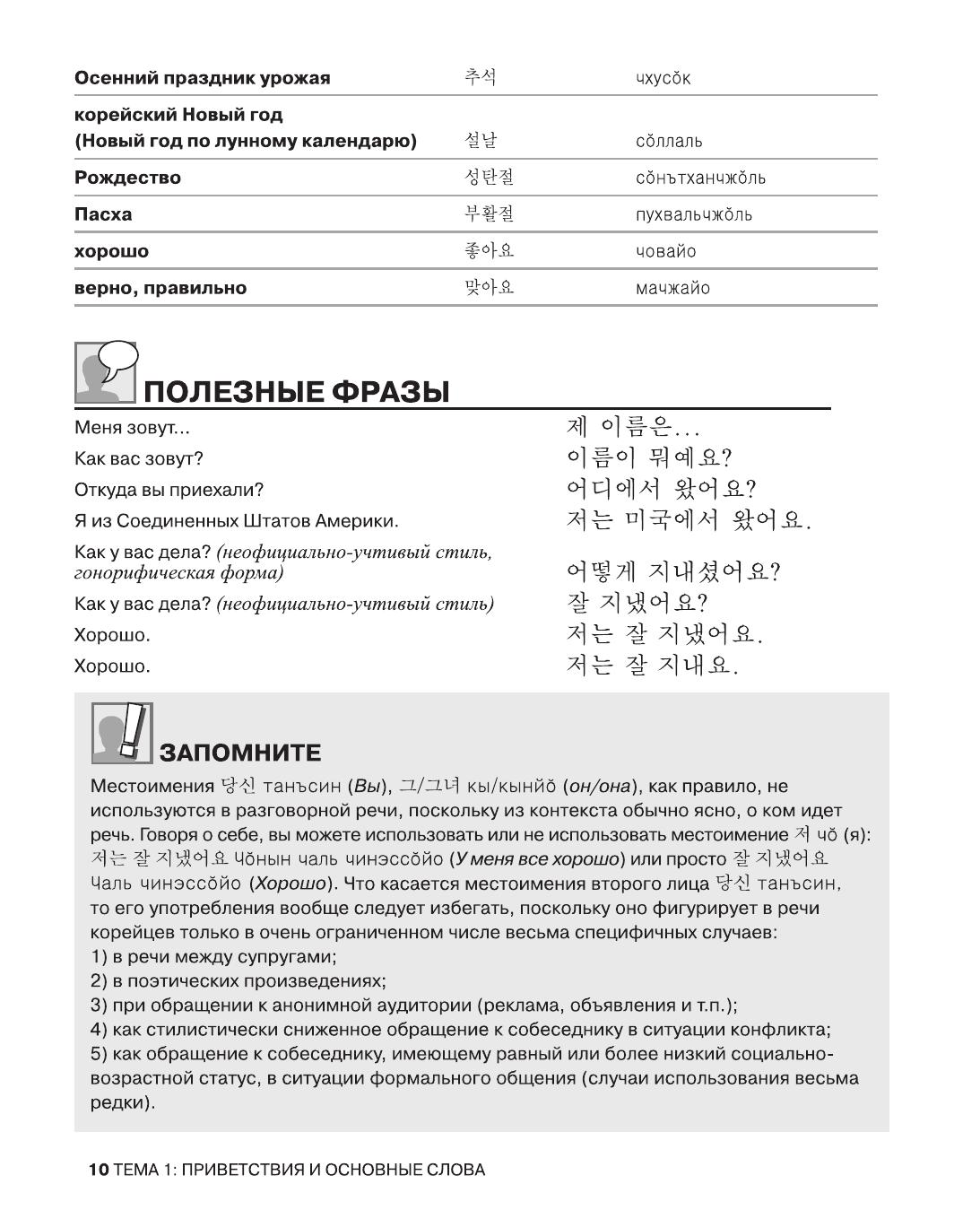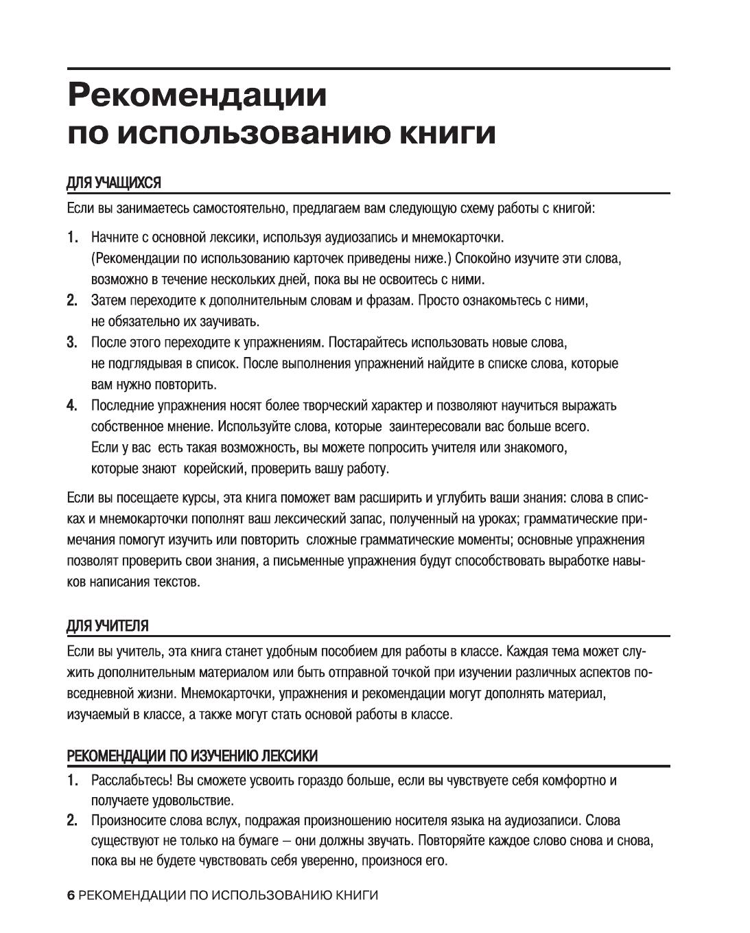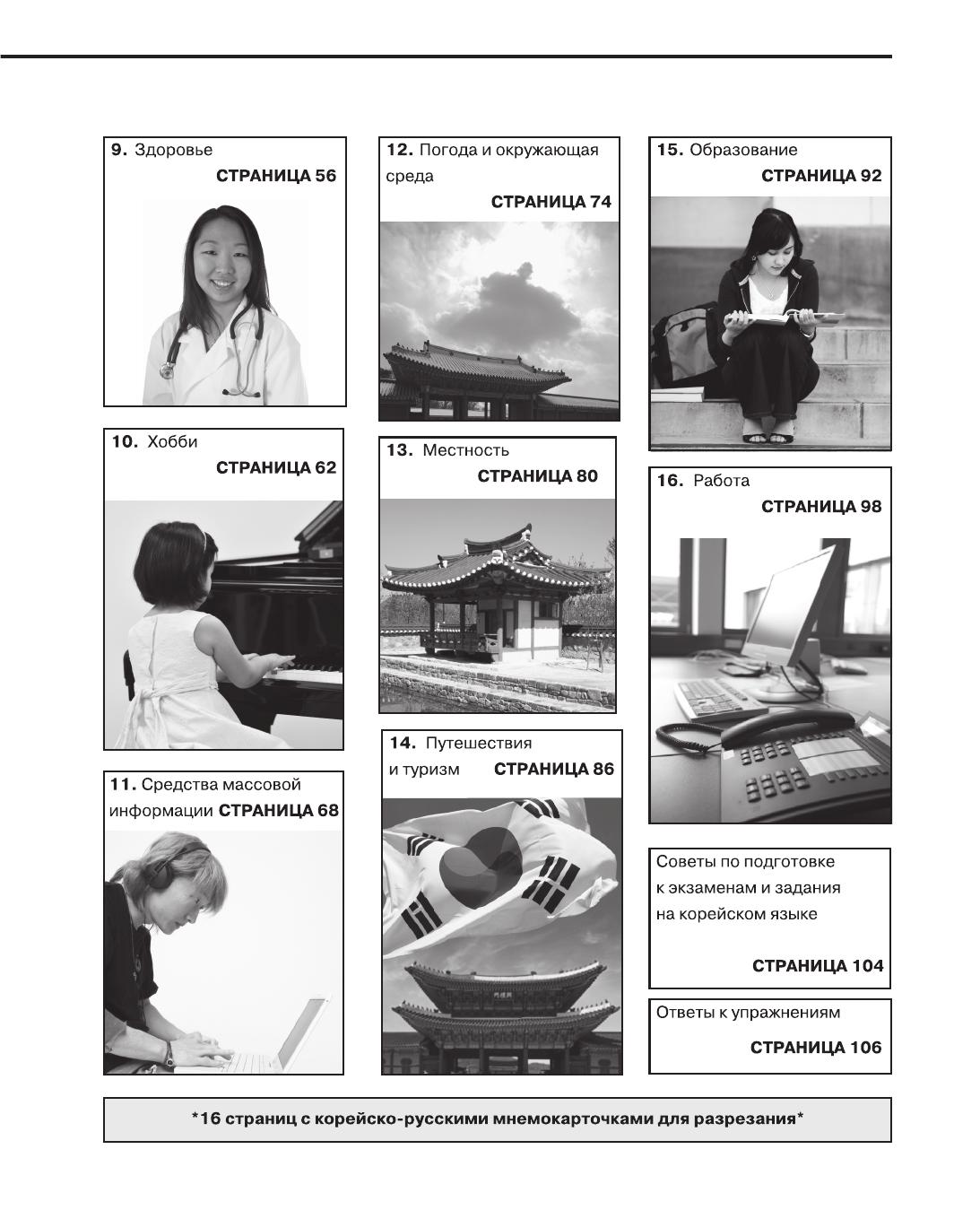 Если вы хотите овладеть разговорной лексикой корейского языка и научиться общаться без словаря, то эта книга для вас. Пособие автора Син Сончжона знакомит учащихся с такими базовыми темами современной повседневной коммуникации, как "Семья и друзья", "Магазины", "Еда и напитки", "Хобби", "Туризм", "Образование" и "Работа". В качестве дополнительного материала в издание включены русско-корейские мнемокарточки и раздел "Подготовка к экзаменам", где можно найти рекомендации по подготовке к тестам и экзаменам по корейскому языку.