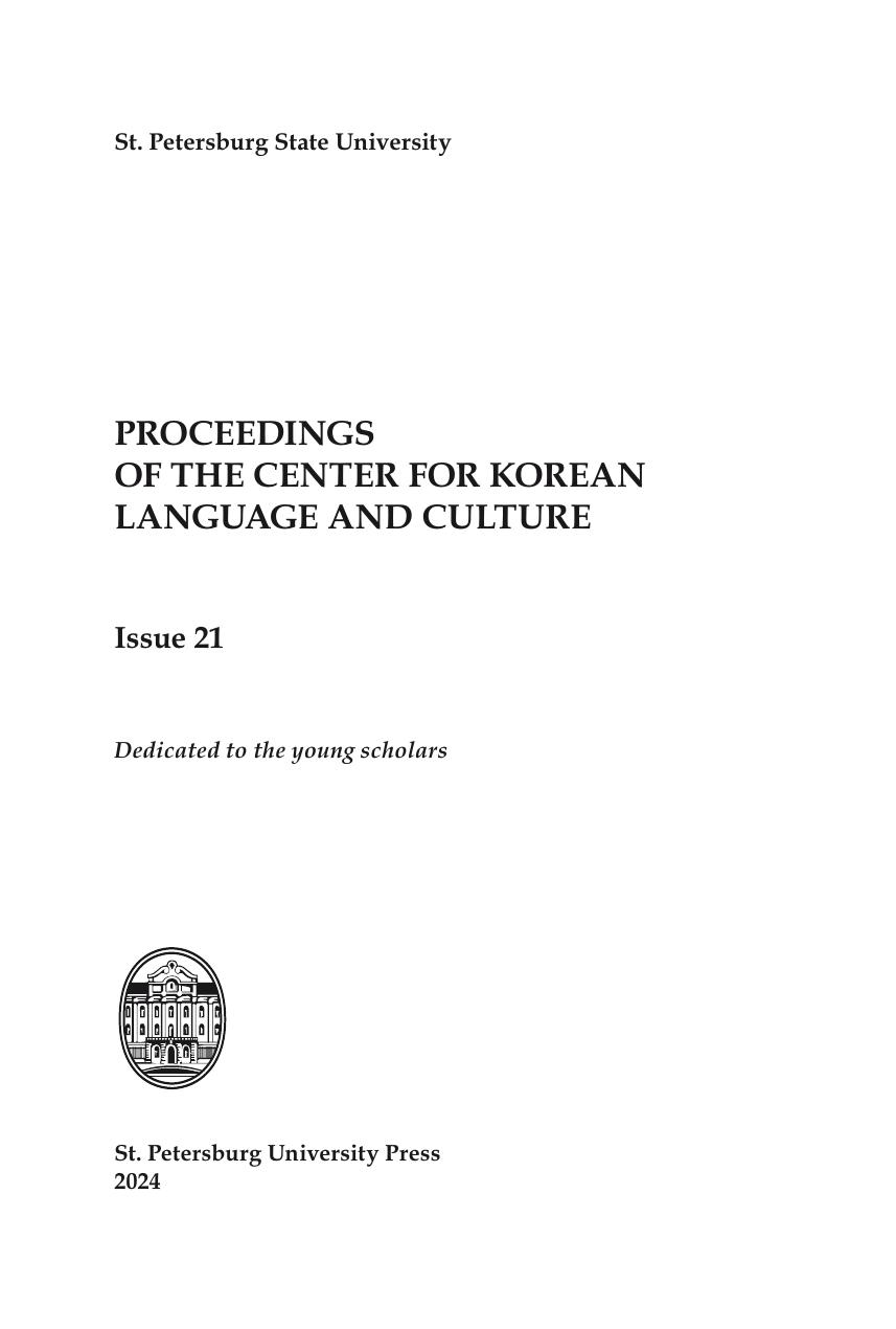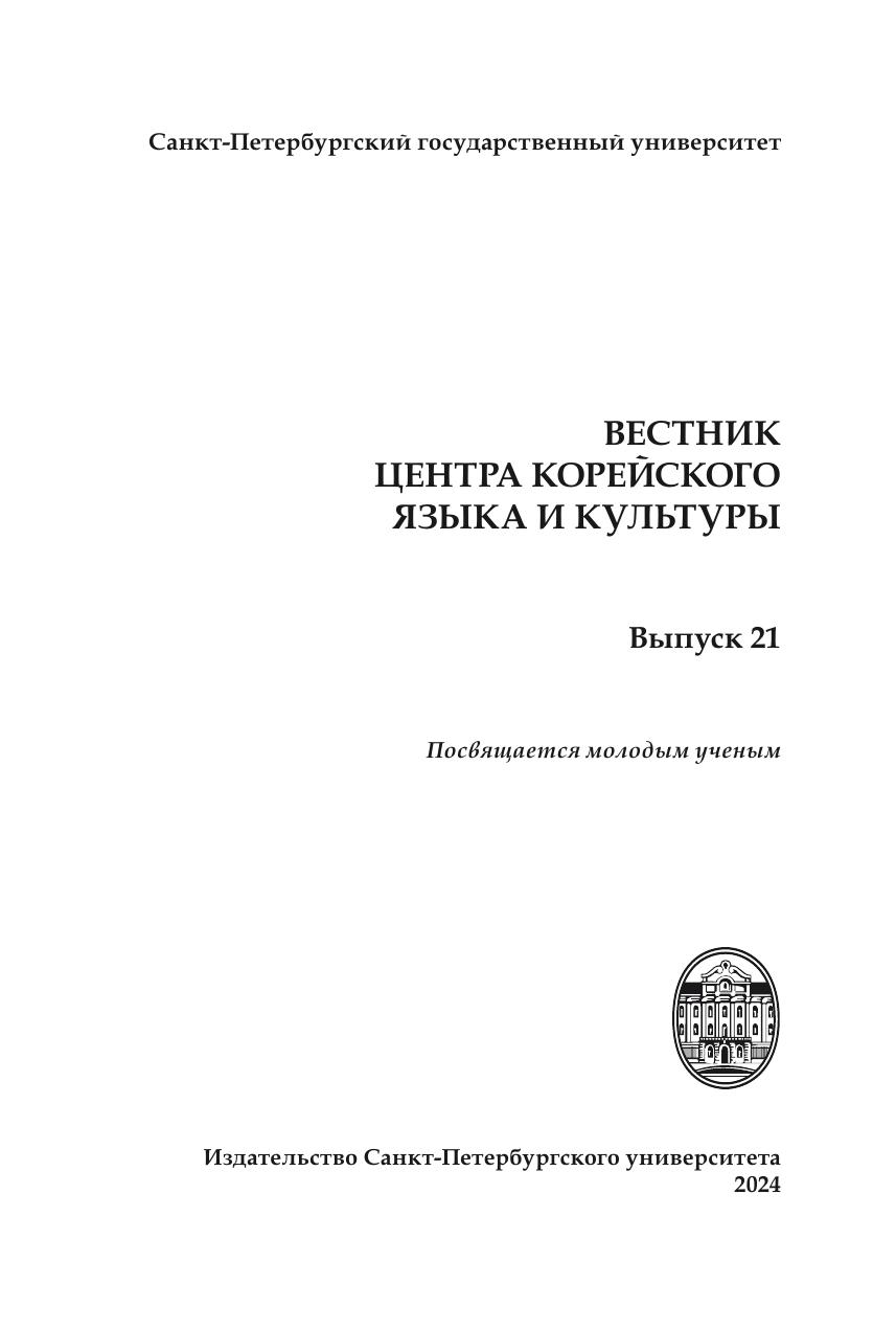 Двадцать первый выпуск "Вестника Центра корейского языка и культуры" подготовлен в рамках исследовательской деятельности кафедры корееведения восточного факультета Санкт-Петербургского государственного университета, образованной в результате многолетней деятельности корееведов второй половины ХХ - начала ХХI века. Настоящий номер "Вестника" посвящен молодым ученым-корееведам. "Вестник Центра корейского языка и культуры" включает научные статьи и материалы по различным аспектам корееведения: лингвистике, литературоведению, истории, культуре Кореи. Авторами статей "Вестника" являются как известные петербургские корееведы, та и их начинающие молодые коллеги, а также представители корееведческого сообщества России и Республики Корея.