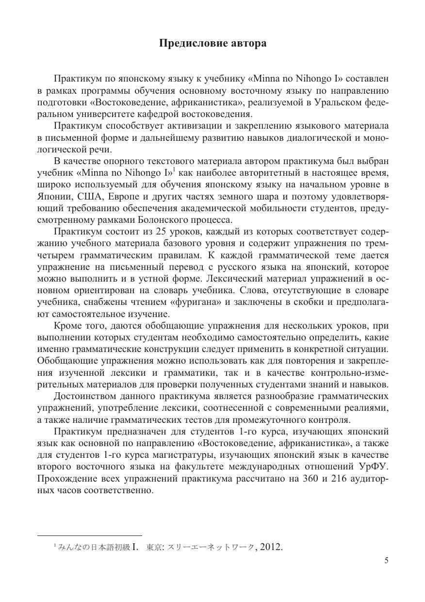 Практикум состоит из 25 уроков и содержит более 160 упражнений, позволяющих систематизировать знания основных грамматических явлений, представленных в учебнике "Minna no Nihongo I", который был выбран в качестве опорного текстового материала. Особое внимание уделено темам, которые вызывают трудности на начальном этапе обучения: указательные местоимения, сравнительные степени прилагательных, глаголы направленности действия, условные конструкции.Практикум предназначен для студентов, изучающих дисциплины "Основной восточный язык" и "Дополнительный восточный язык".