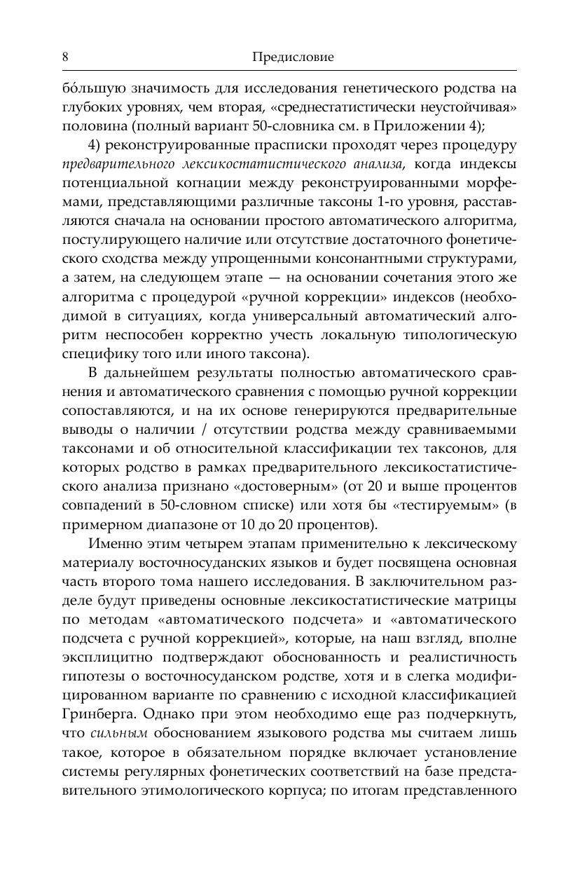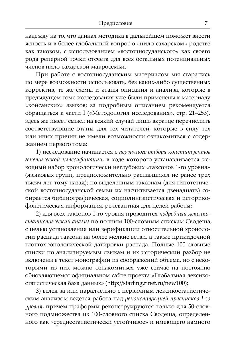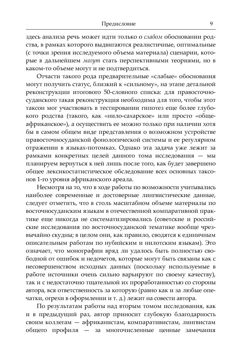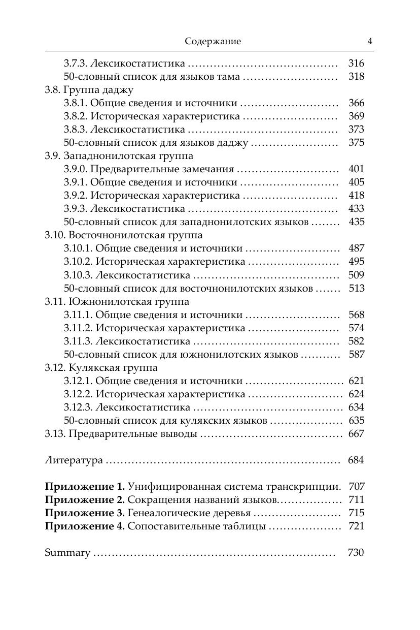 Второй том многотомного исследования «Языки Африки. Опыт по-строения лексикостатистической классификации» целиком посвящен проблеме исторического статуса восточносуданской семьи языков — крупнейшего из составных компонентов т. н. «нило-сахарской» макросемьи, одного из наиболее спорных языковых объединений, предложенных Дж. Гринбергом в рамках получившей классический статус таксономической модели языков Африки. Исследование потенциальных генетических и ареальных связей между языками восточносуданской семьи в целом следует методике, уже апробированной в предыдущем томе на материале койсанских языков. Помимо решения основной задачи исследования (детальной реконструкции наиболее устойчивых элементов базисной лексики для всех ветвей восточносуданской семьи с последующим лексикостатистическим сравнением), в монографию входят также общие сведения социолингвистического и библиографического характера по всем известным на текущий момент восточносуданским языкам, а также краткие историко-фонетические характеристики каждой из восточносуданских ветвей. Книга предназначена для специалистов по общему, сравнительно-историческому и типологическому языкознанию, африканистов самых различных профилей, и широкого круга читателей, в той или иной степени интересующихся теоретическими, методологическими и практическими аспектами реконструкции лингвистических аспектов предыстории человечества.