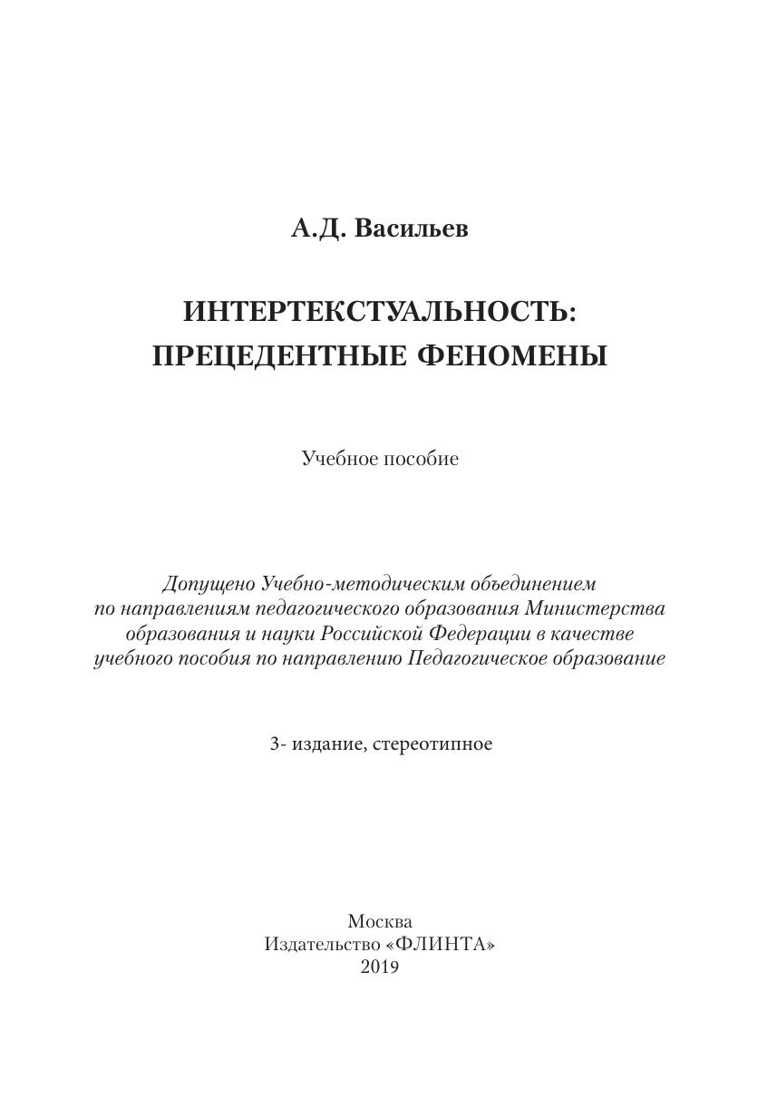Интертекстуальность: прецедентные феномены: учеб пособие
