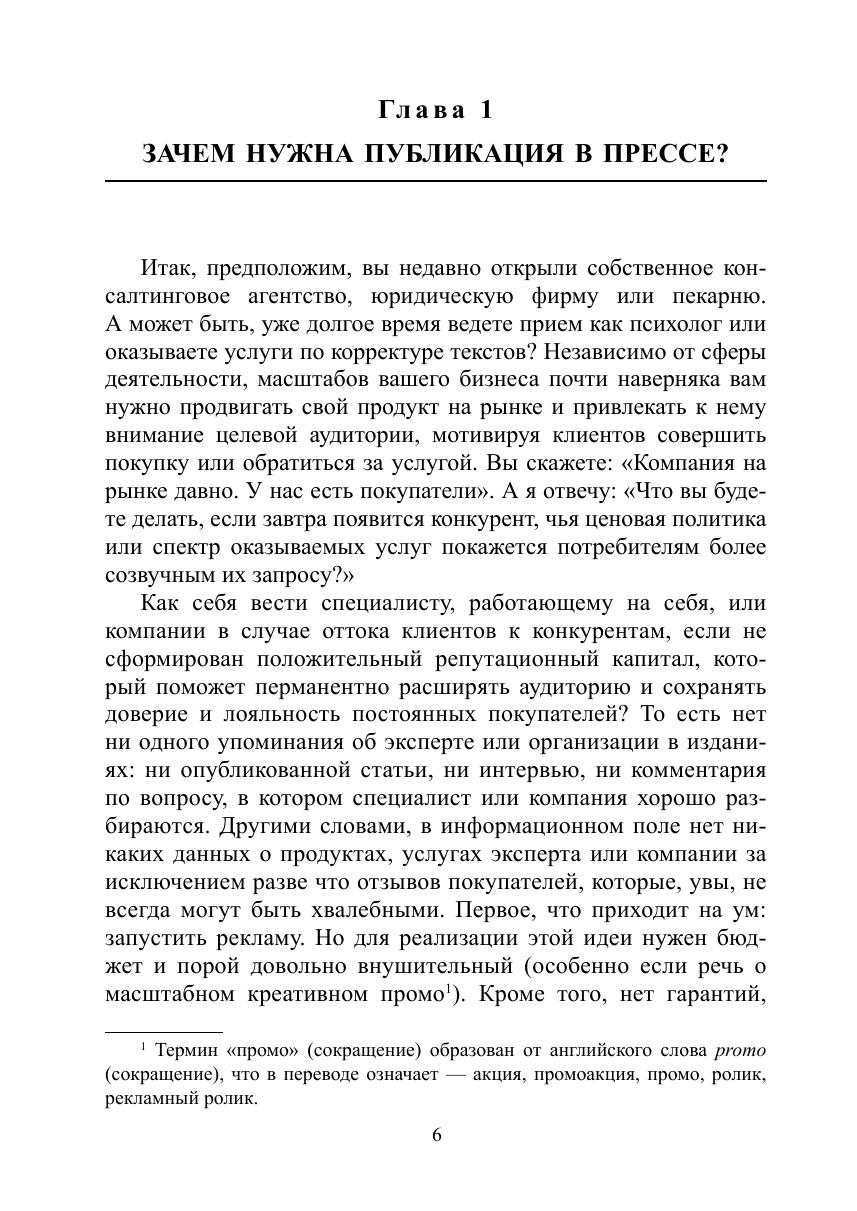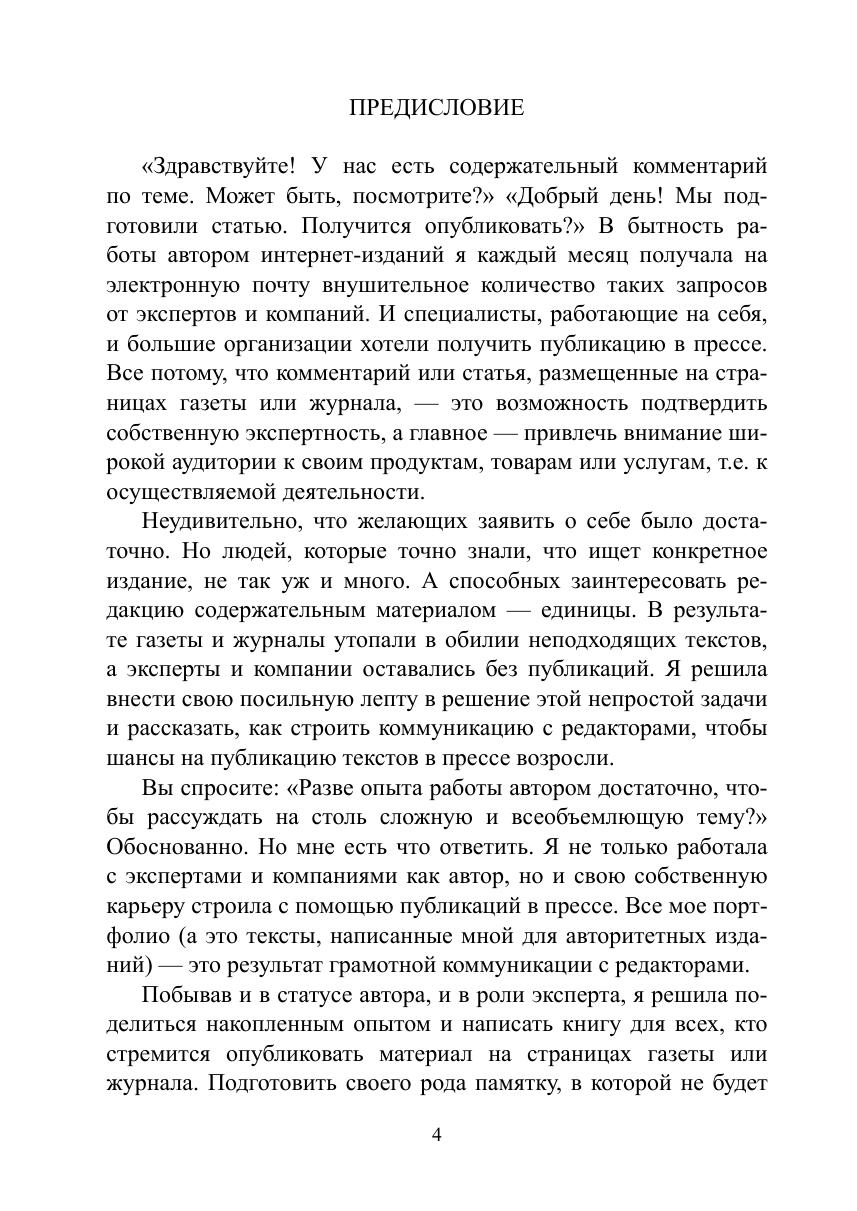 Автор делится накопленным опытом с теми, кто стремится опубликовать материал на страницах газеты или журнала; рассказывает, как строить коммуникацию с редакциями изданий, чтобы шансы на публикацию текстов в прессе возросли. Это своего рода памятка, где нет пространных теоретических рассуждений, а только конкретные практические знания. Для специалистов (экспертов) из различных сфер профессиональной деятельности; специалистов по связям с общественностью;