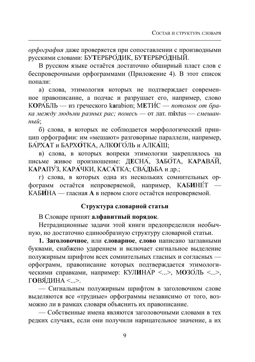 Для словаря современных трудных написаний отобрано около 4000 слов, которые вызывают наибольшие затруднения при письме и включаются в учебные списки для запоминания как словарные слова с непроверяемыми орфограммами. Справочник даёт достаточно широкую информацию о каждом из 1100 заголовочных слов: нормативный орфографический вариант, ударение, толкование основных значений, а также сведения о происхождении, путях и времени заимствования, соответственные параллели в других языках, однокоренные слова, сохранившие или утратившие генетическое родство. Историко-этимологический комментарий помогает найти для их правописания надёжную опору среди этимологически родственных слов славянского или иноязычного происхождения.