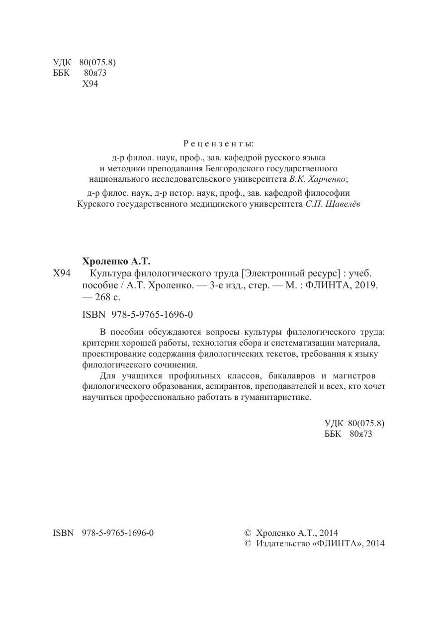В пособии обсуждаются вопросы культуры филологического труда: критерии хорошей работы, технология сбора и систематизации материала, проектирование содержания филологических текстов, требования к языку