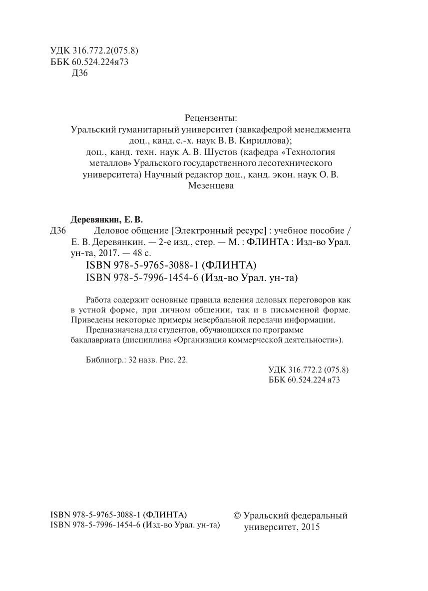 Работа содержит основные правила ведения деловых переговоров как в устной форме, при личном общении, так и в письменной форме. Приведены некоторые примеры невербальной передачи информации. Предназначена для студентов, обучающихся по программе бакалавриата (дисциплина «Организация коммерческой деятельности»).