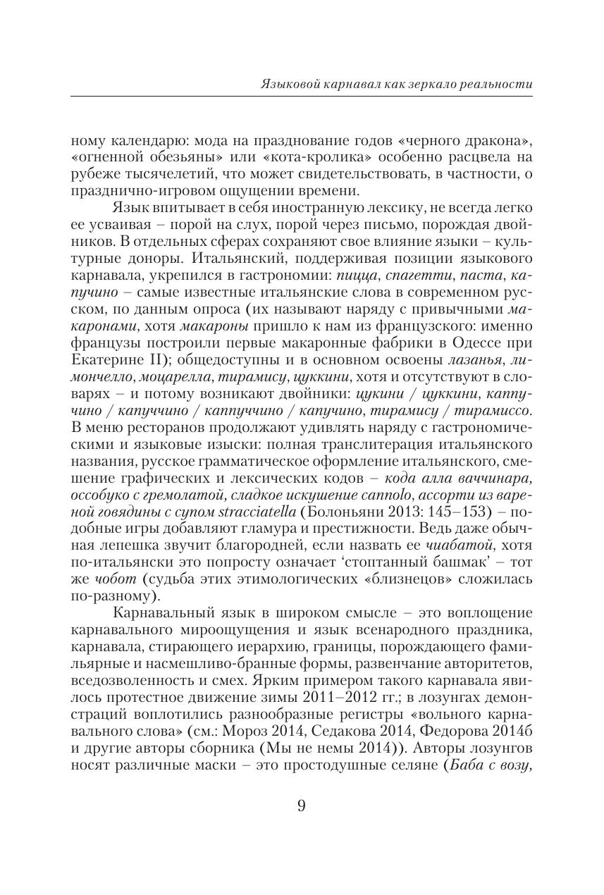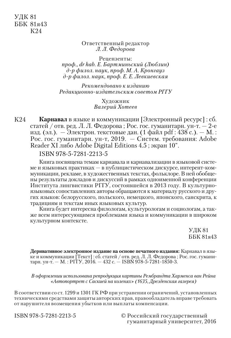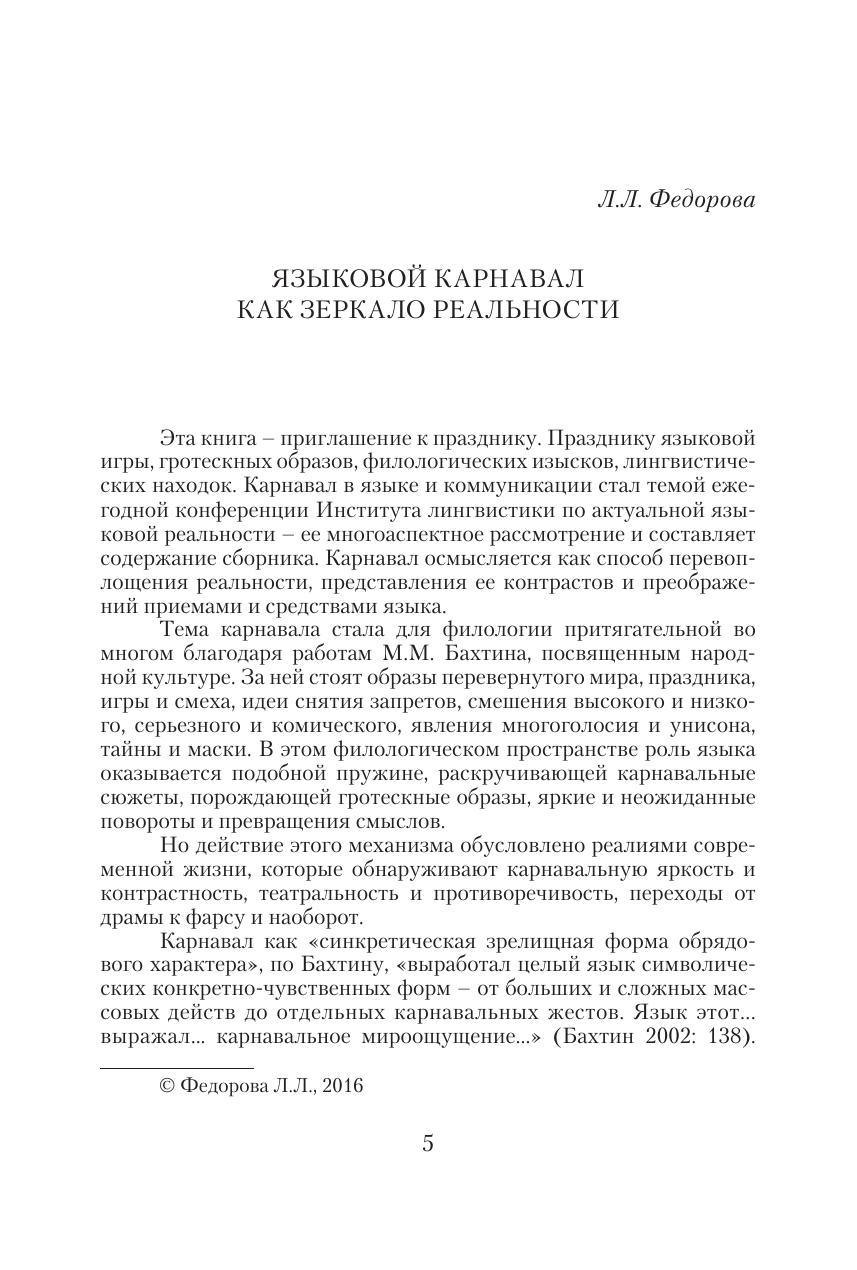 Книга посвящена темам карнавала и карнавализации в языковой системе и языковых практиках — в публицистическом дискурсе, интерент-коммуникации, рекламе, в художественных текстах, фольклоре. В ней обобщены результаты докладов и дискуссий в рамках одноименной конференции Института лингвистики РГГУ, состоявшейся в 2013 году. В культурно-языковых сопоставлениях авторы обращаются к материалу русского и других языков: белорусского, польского, немецкого, японского, санскрита, к традициям и текстам иных языковых культур.