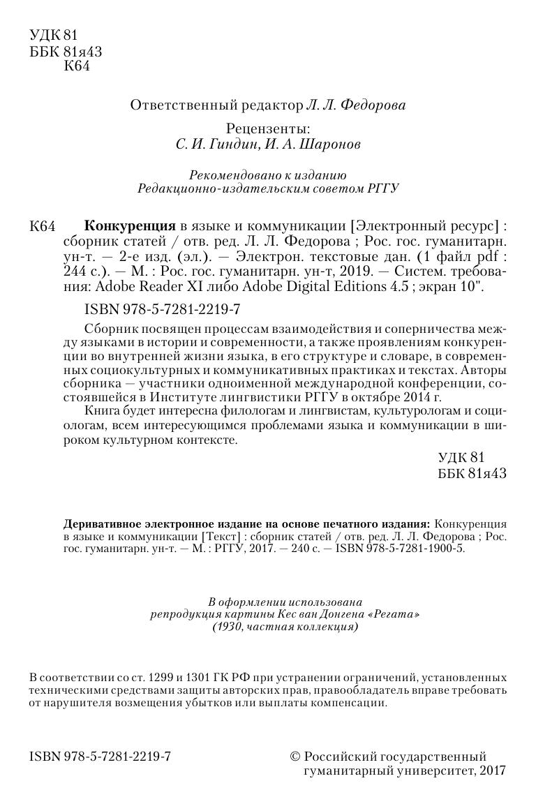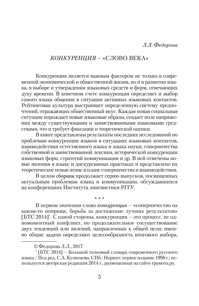 Сборник посвящен процессам взаимодействия и соперничества между языками в истории и современности, а также проявлениям конкуренции во внутренней жизни языка, в его структуре и словаре, в современных социокультурных и коммуникативных практиках и текстах. Авторы сборника — участники одноименной международной конференции, состоявшейся в Институте лингвистики РГГУ в октябре 2014 г.