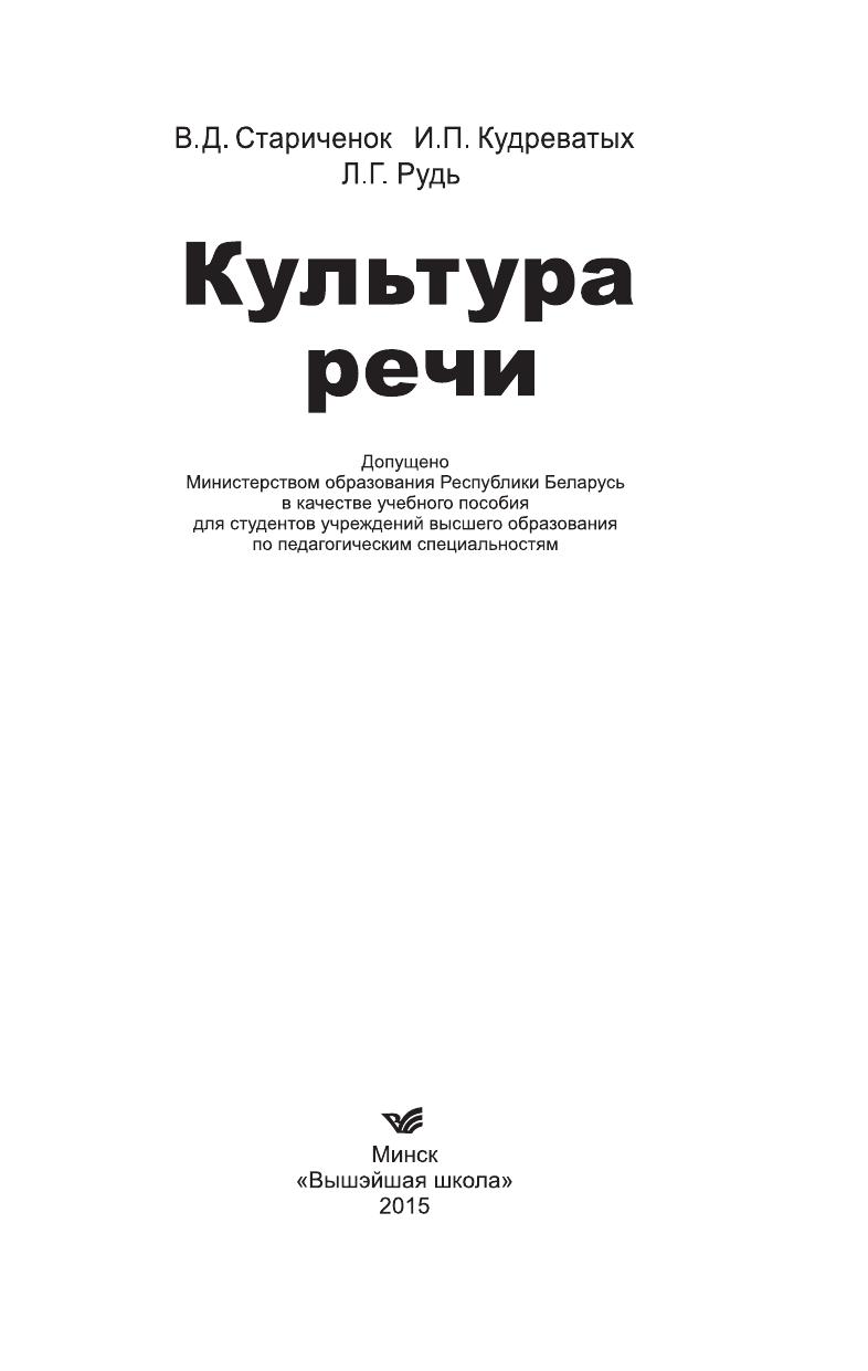 Определяются важнейшие качества культуры речи: точность, логичность, чистота, ясность. Приводятся примеры средств выразительности речи на всех уровнях языковой системы. Дается характеристика основных норм современного русского языка. Для повышения культуры речи в конце пособия предлагаются: краткий словарь деловых терминов, словарь собственных имен, краткий орфографический словарь. Для студентов вузов, аспирантов, преподавателей, переводчиков, деловых людей, всех, кто желает повысить культуру речи.