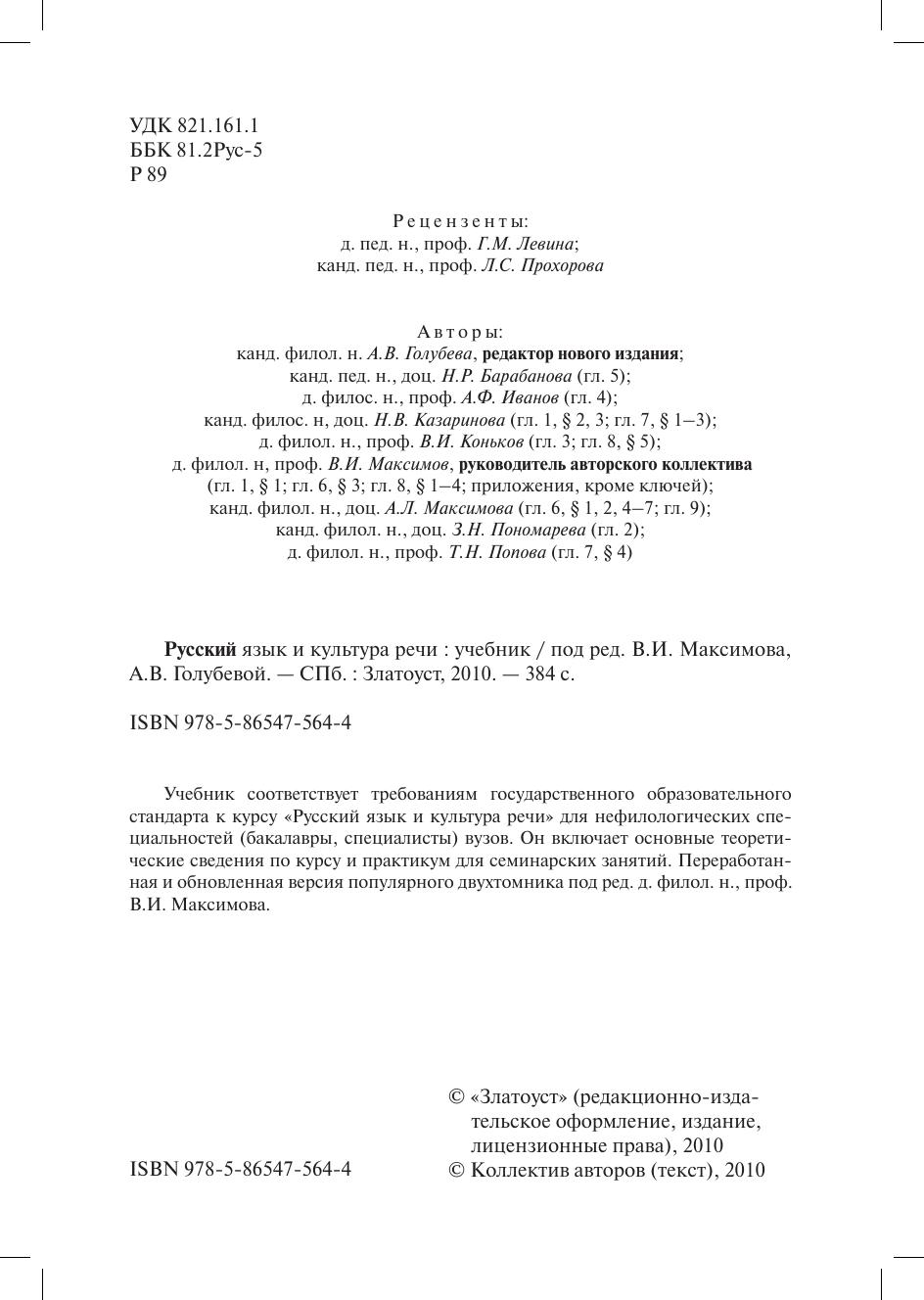 Голубева А.В., В.И. Коньков В.И. Максимов, руководитель авторского коллектива З.Н. Пономарева (гл. 2) Т.Н. Попова. Под редакцией д. филол. н., проф. В.И. Максимова, канд. филол. н. А.В. Голубевой