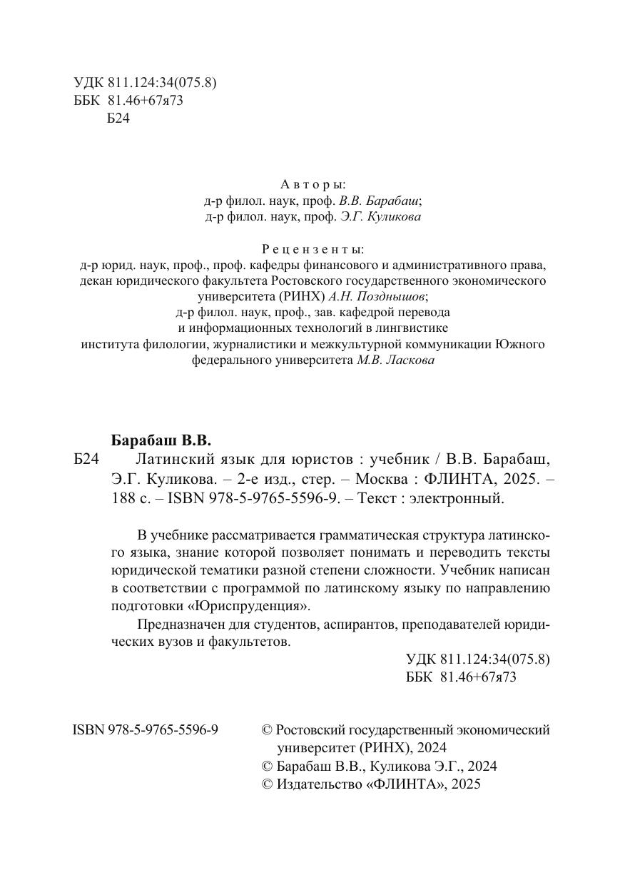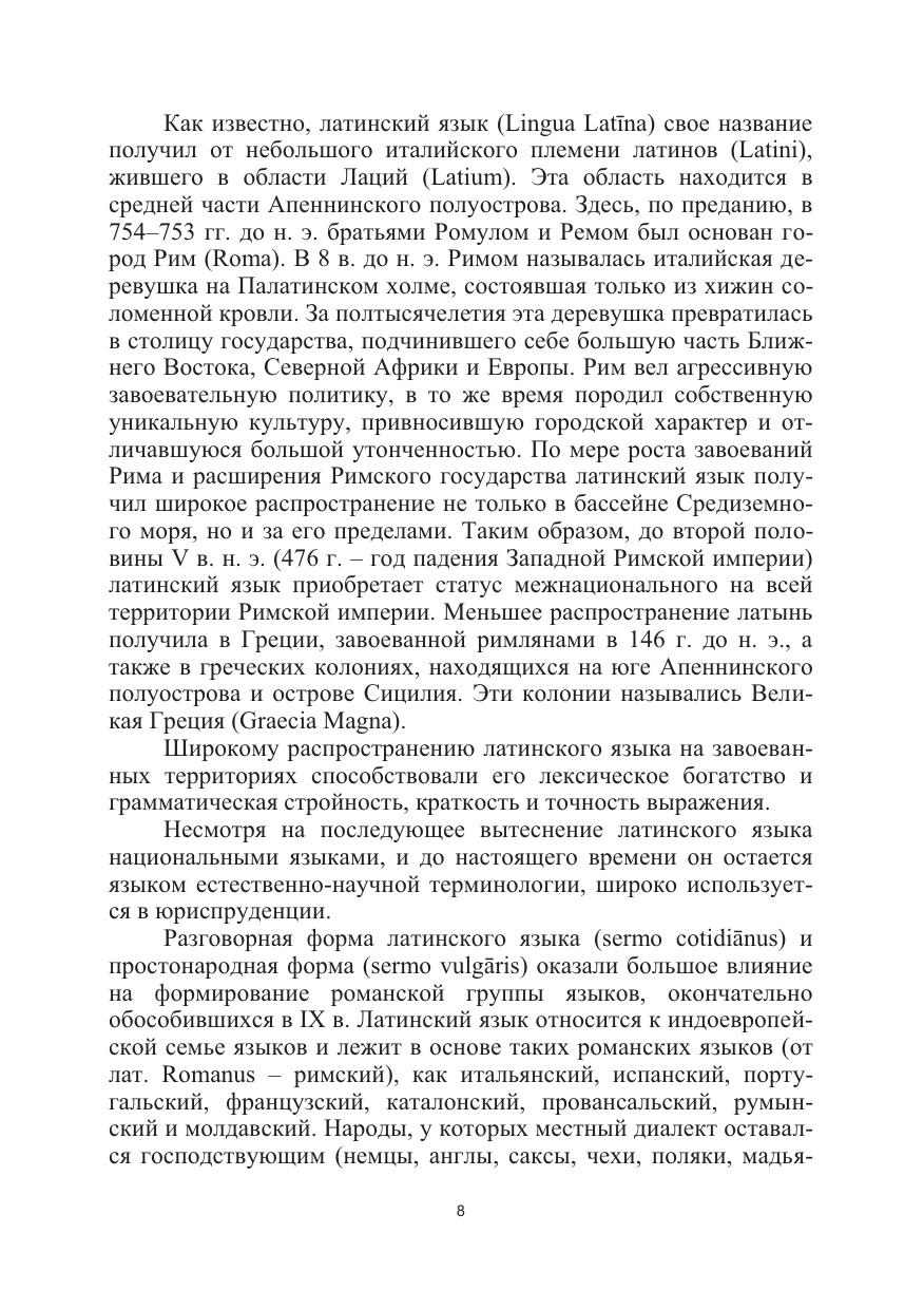 В учебнике рассматривается грамматическая структура латинского языка, знание которой позволяет понимать и переводить тексты юридической тематики разной степени сложности. Учебник написан в соответствии с программой по латинскому языку по направлению подготовки «Юриспруденция».