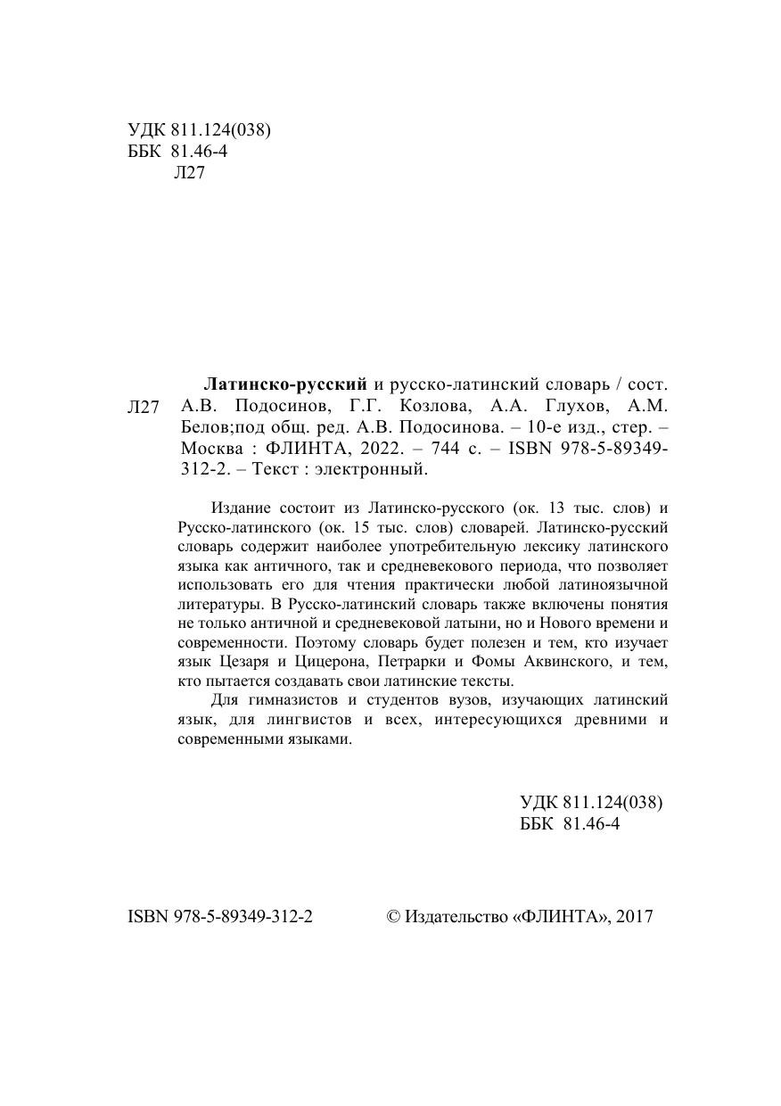Русско-латинского (ок. 15 тыс. слов) словарей. Латинско-русский