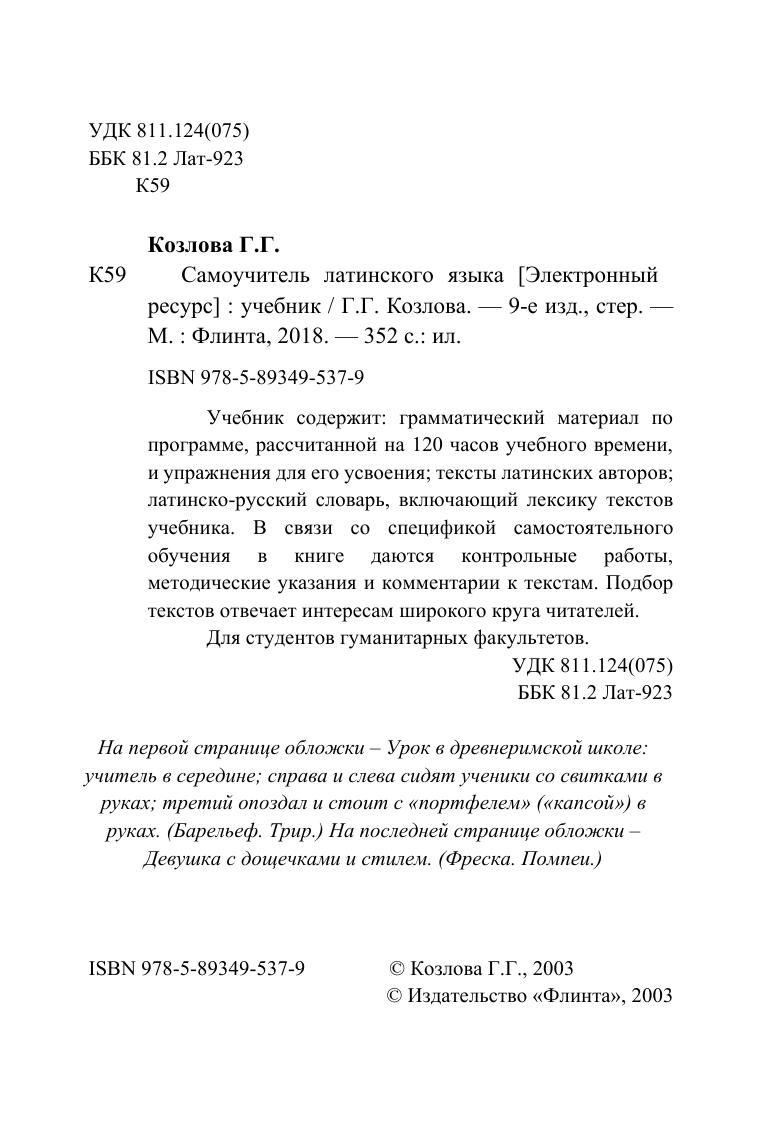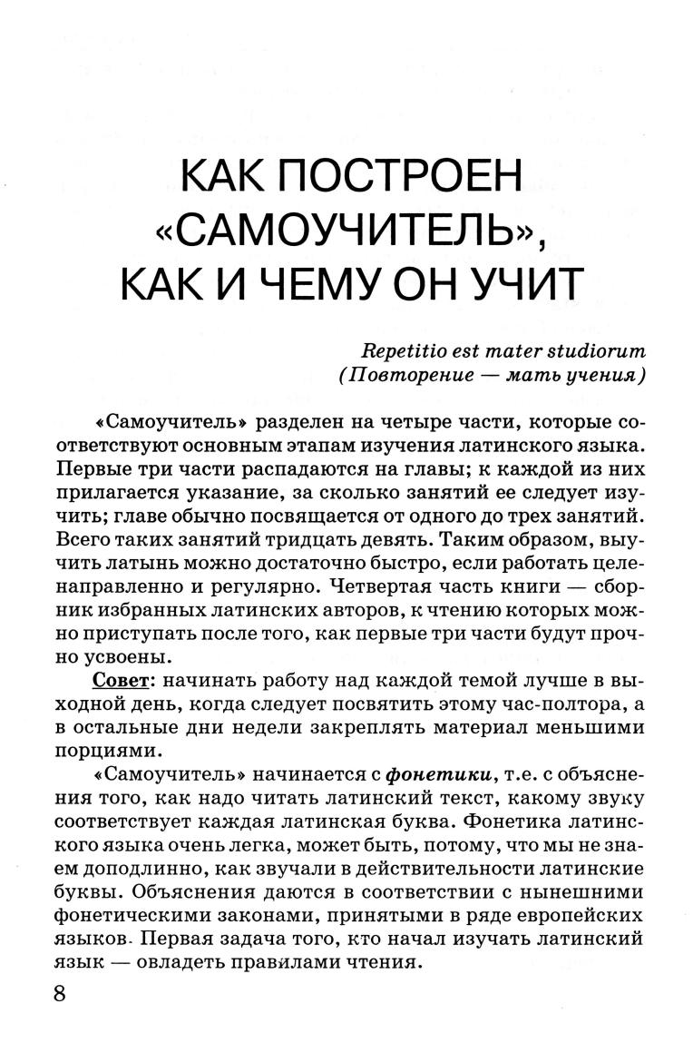 Учебник содержит: грамматический материал по программе, рассчитанной на 120 часов учебного времени, и упражнения для его усвоения; тексты латинских авторов; латинско-русский словарь, включающий лексику текстов учебника. В связи со спецификой самостоятельного обучения в книге даются контрольные работы, методические указания и комментарии к текстам. Подбор текстов отвечает интересам широкого круга читателей. Для студентов гуманитарных факультетов.