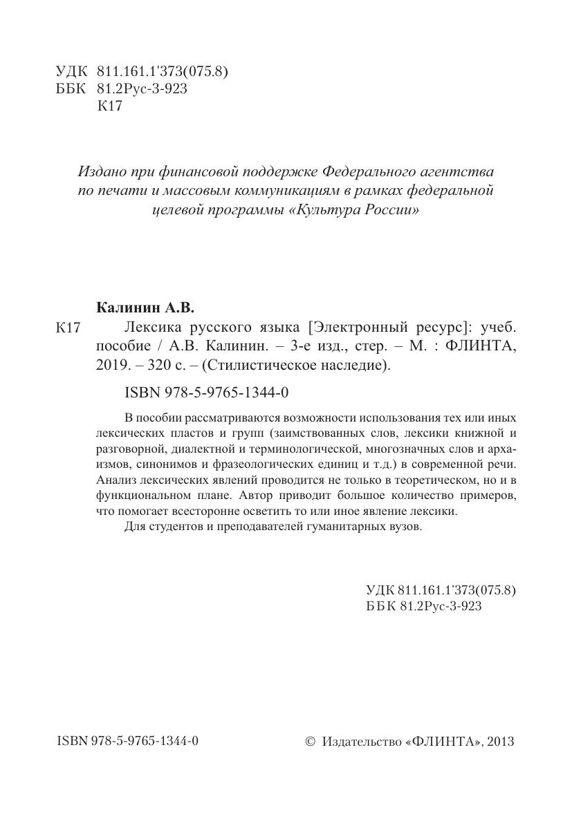 Лексика русского языка. (Стилистическое наследие): учеб. пособие