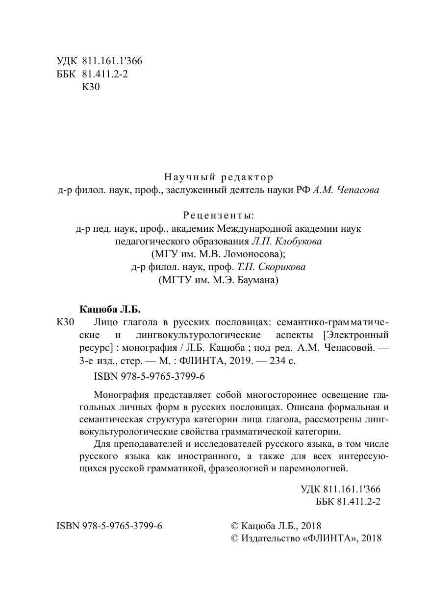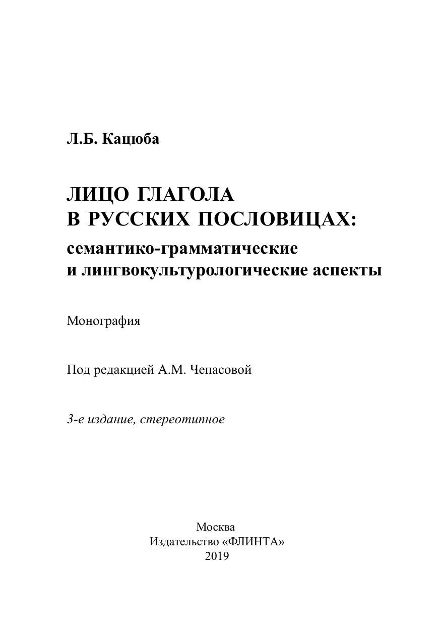 Лицо глагола в русских пословицах: семантико-грамматические и лингвокультурологические аспекты: монография