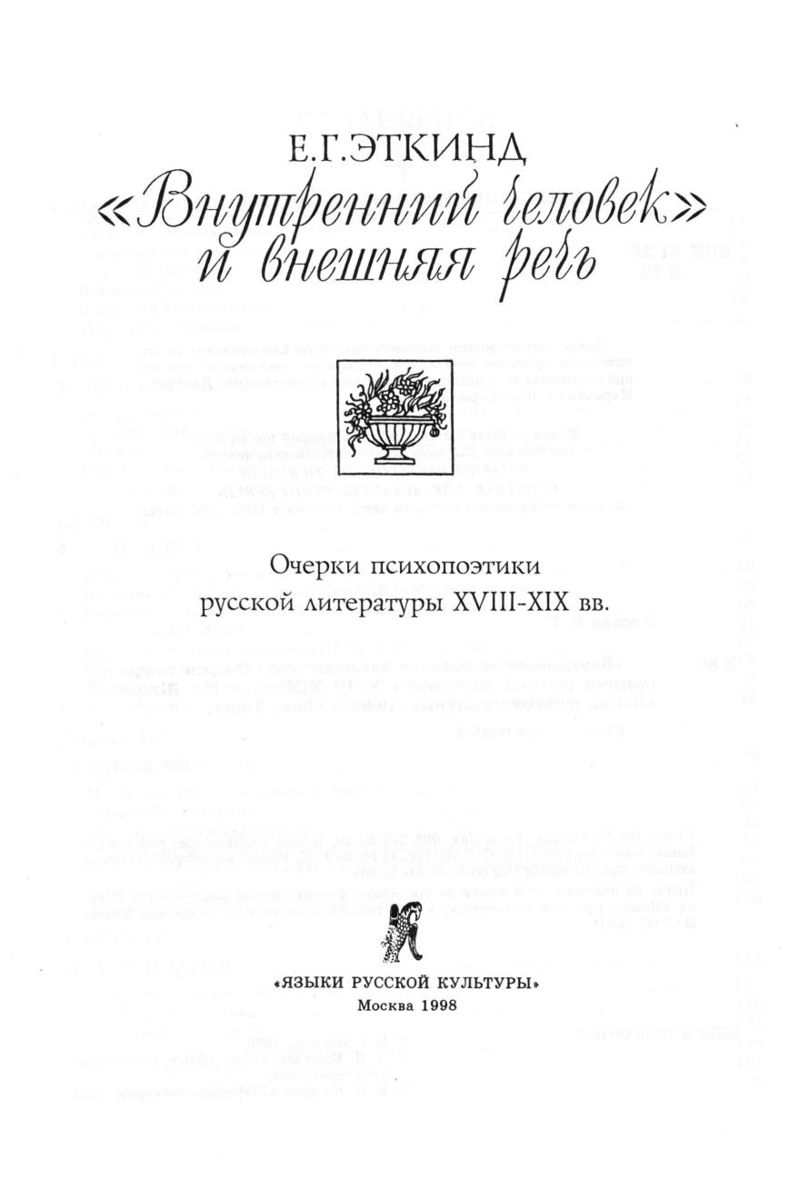 В книге Е.Г. Эткинда представлены очерки психопоэтики русской литературы XVIII-XIX вв., рассмотрены вопросы «внутреннего человека» и внешней речи.