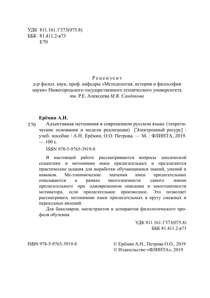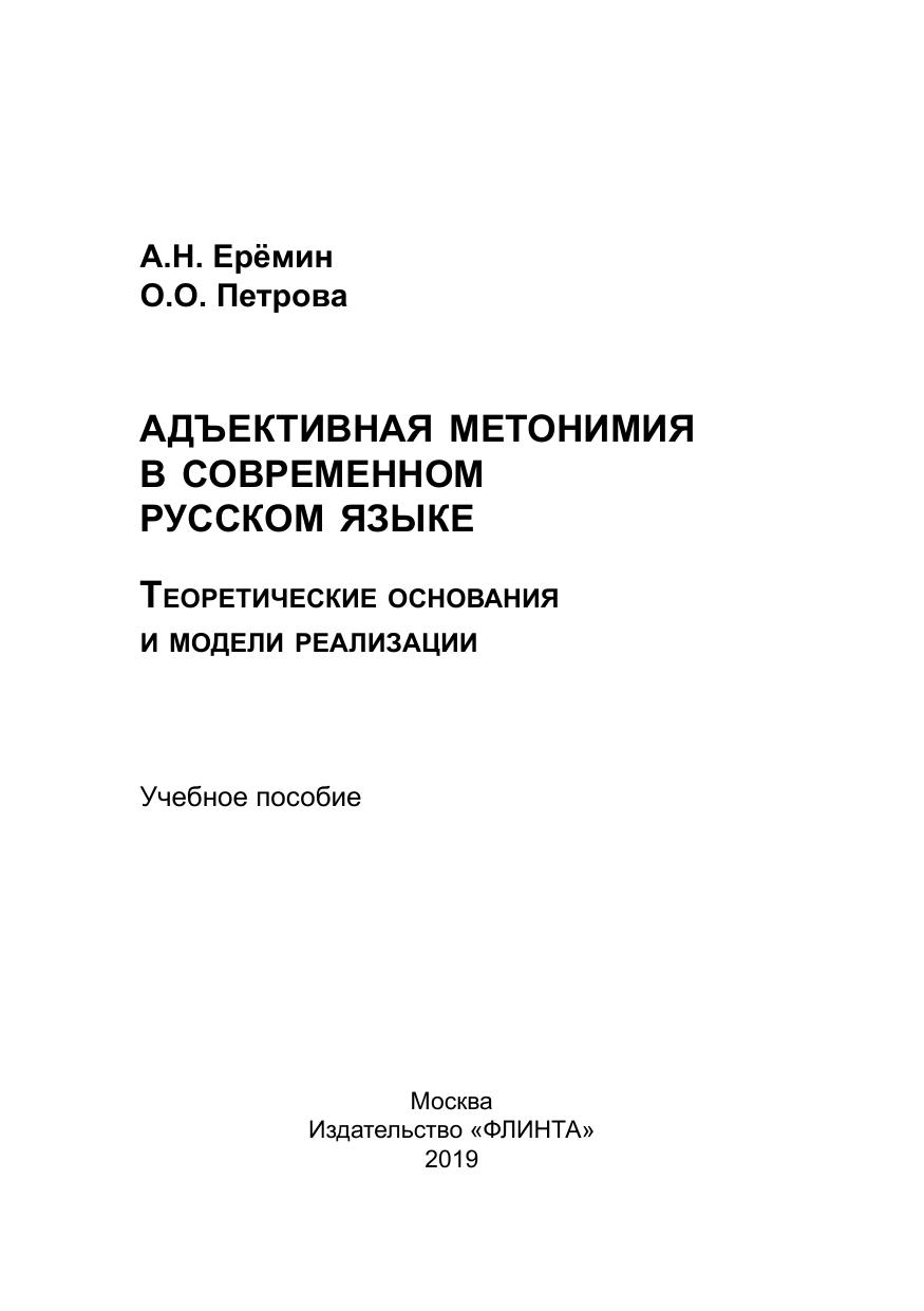 Адъективная метономия в современном русском языке (теоретические основания и модели реализации): учеб. пособие