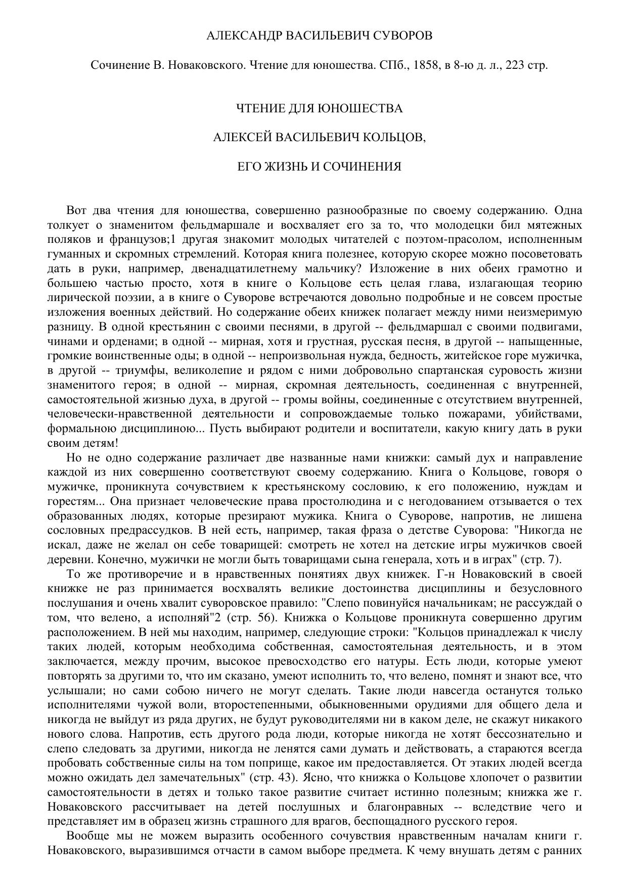 Александр Васильевич Суворов. Сочинение В. Новаковского. - Алексей Васильевич Кольцов, его жизнь и сочинения