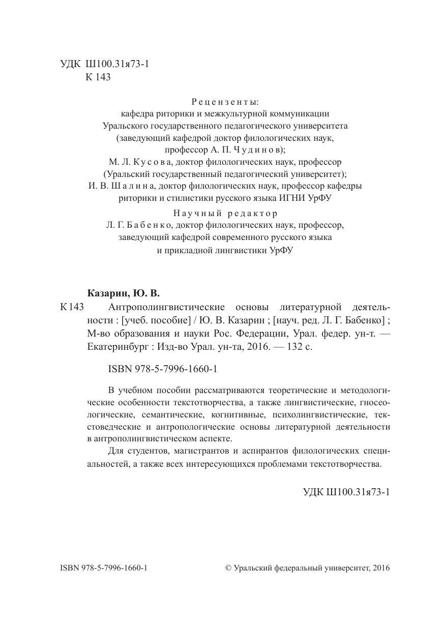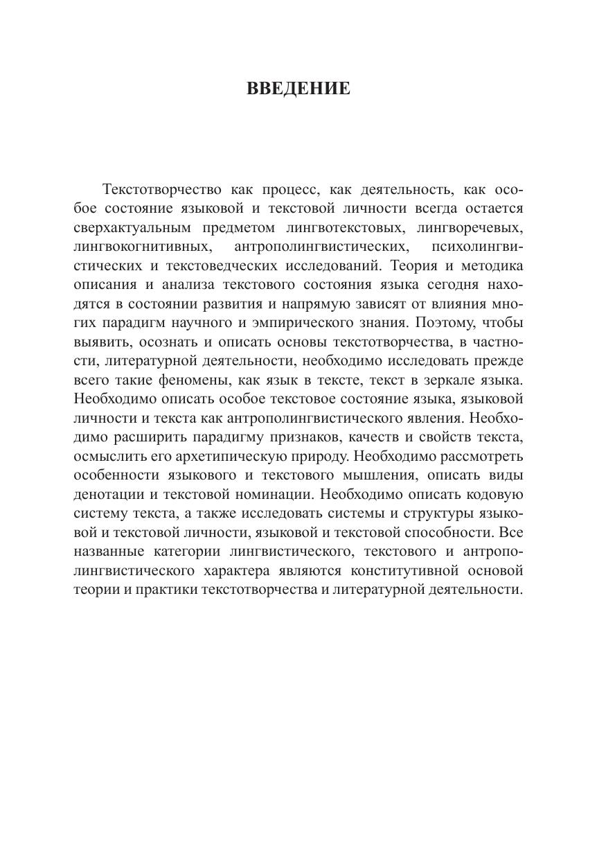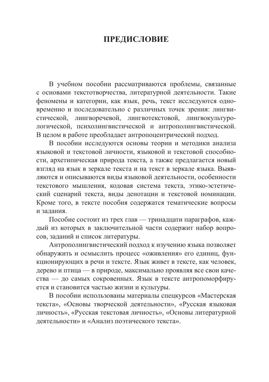 В учебном пособии рассматриваются теоретические и методологические особенности текстотворчества, а также лингвистические, гносеологические, семантические, когнитивные, психолингвистические, текстоведческие и антропологические основы литературной деятельности в антрополингвистическом аспекте. Для студентов, магистрантов и аспирантов филологических специальностей, а также всех интересующихся проблемами текстотворчества.
