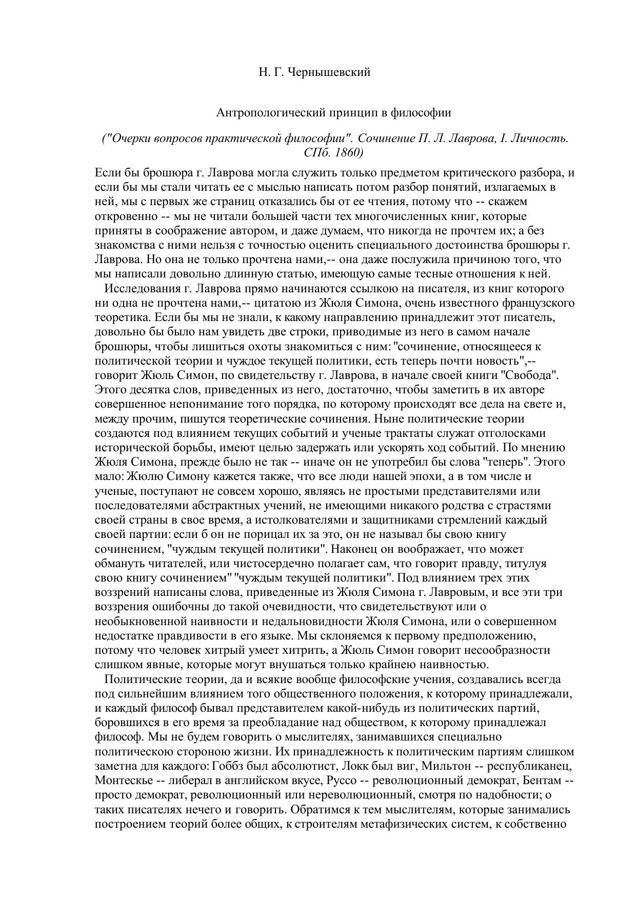 Антропологический принцип в философии. «Очерки вопросов практической философии». Сочинение П.Л. Лаврова