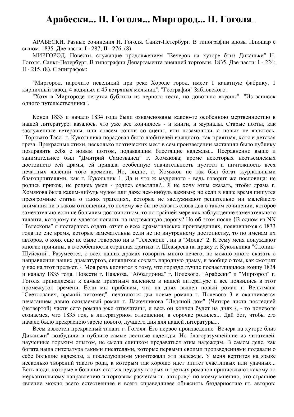 Арабески... Н. Гоголя... Миргород... Н. Гоголя…