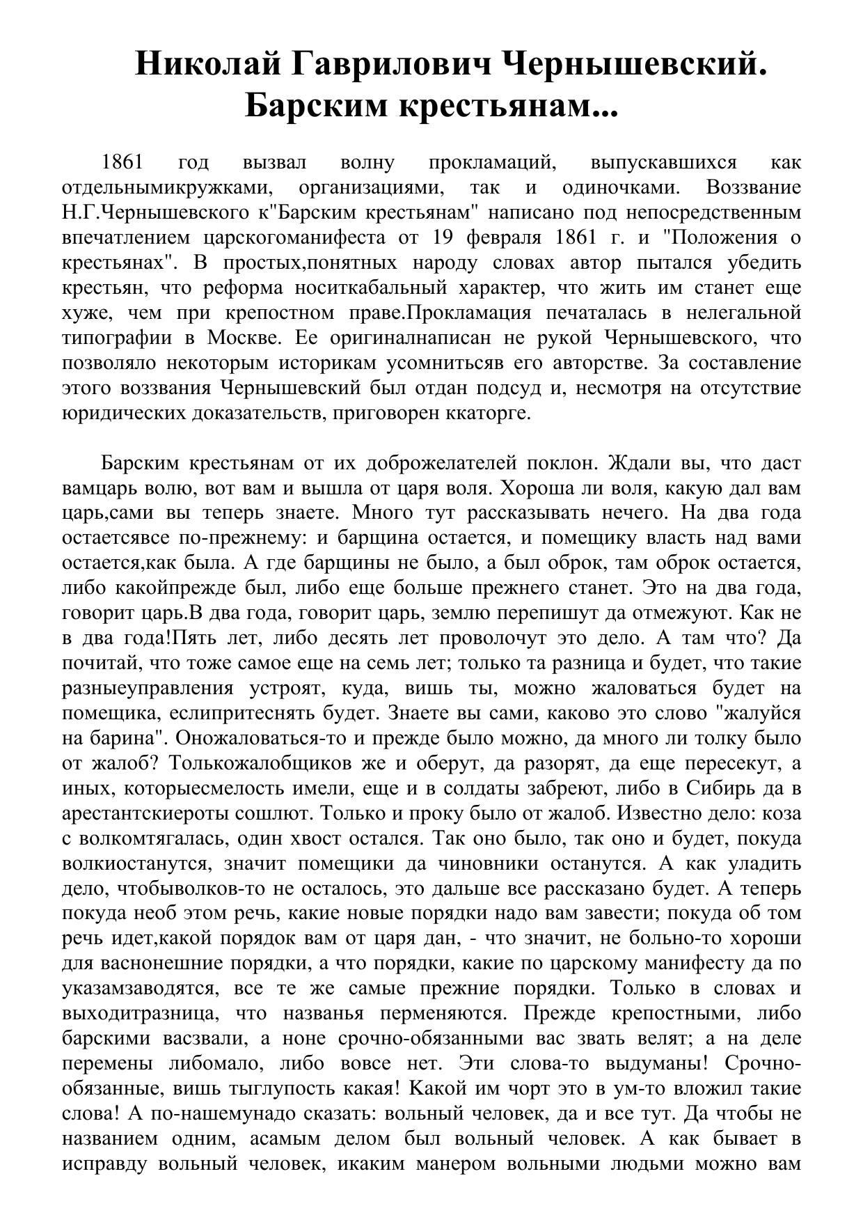 Барским крестьянам от их доброжелателей
