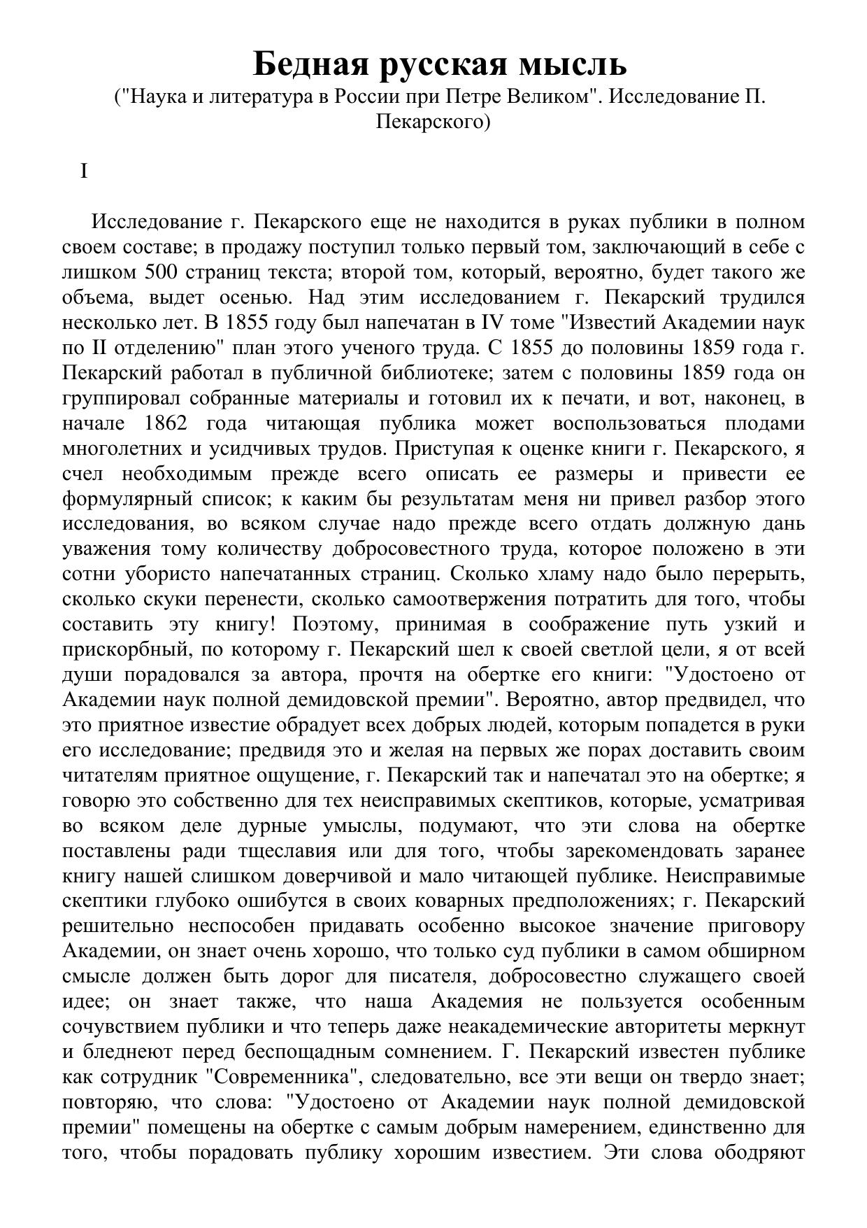 Бедная русская мысль ("Наука и литература в России при Петре Великом". Исследование П. Пекарского)