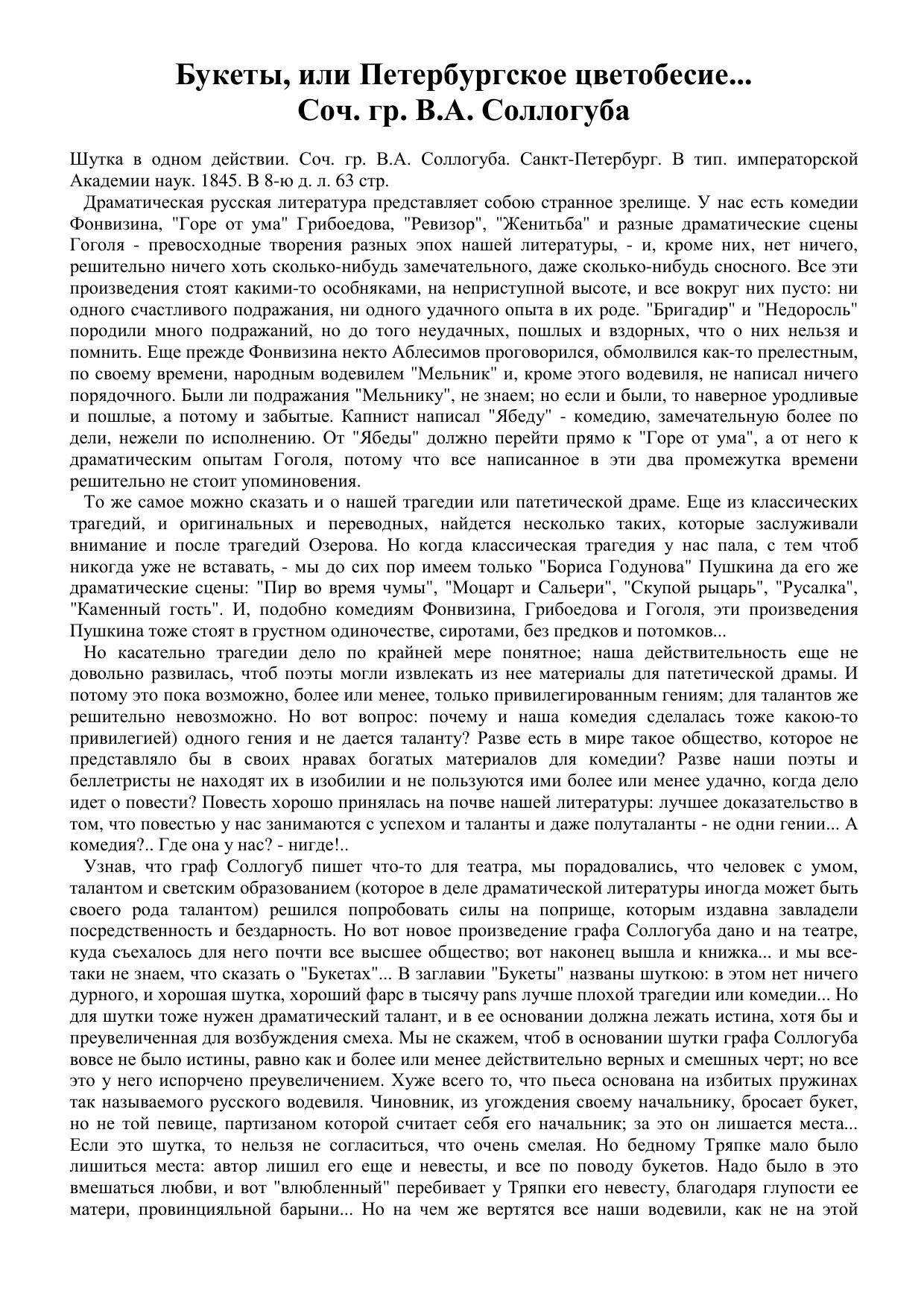 Букеты, или Петербургское цветобесие... Соч. гр. В.А. Соллогуба
