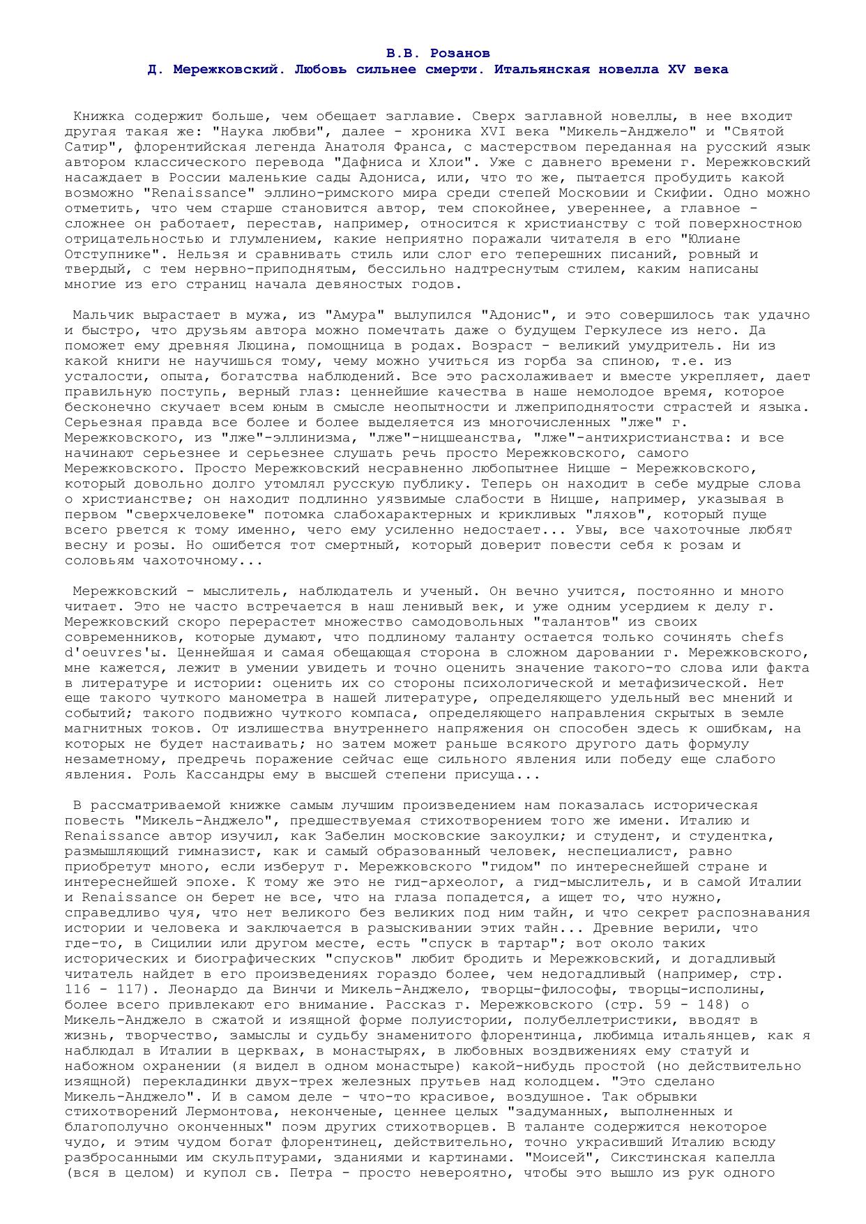 Д.Мережковский. Любовь сильнее смерти. <рец.>