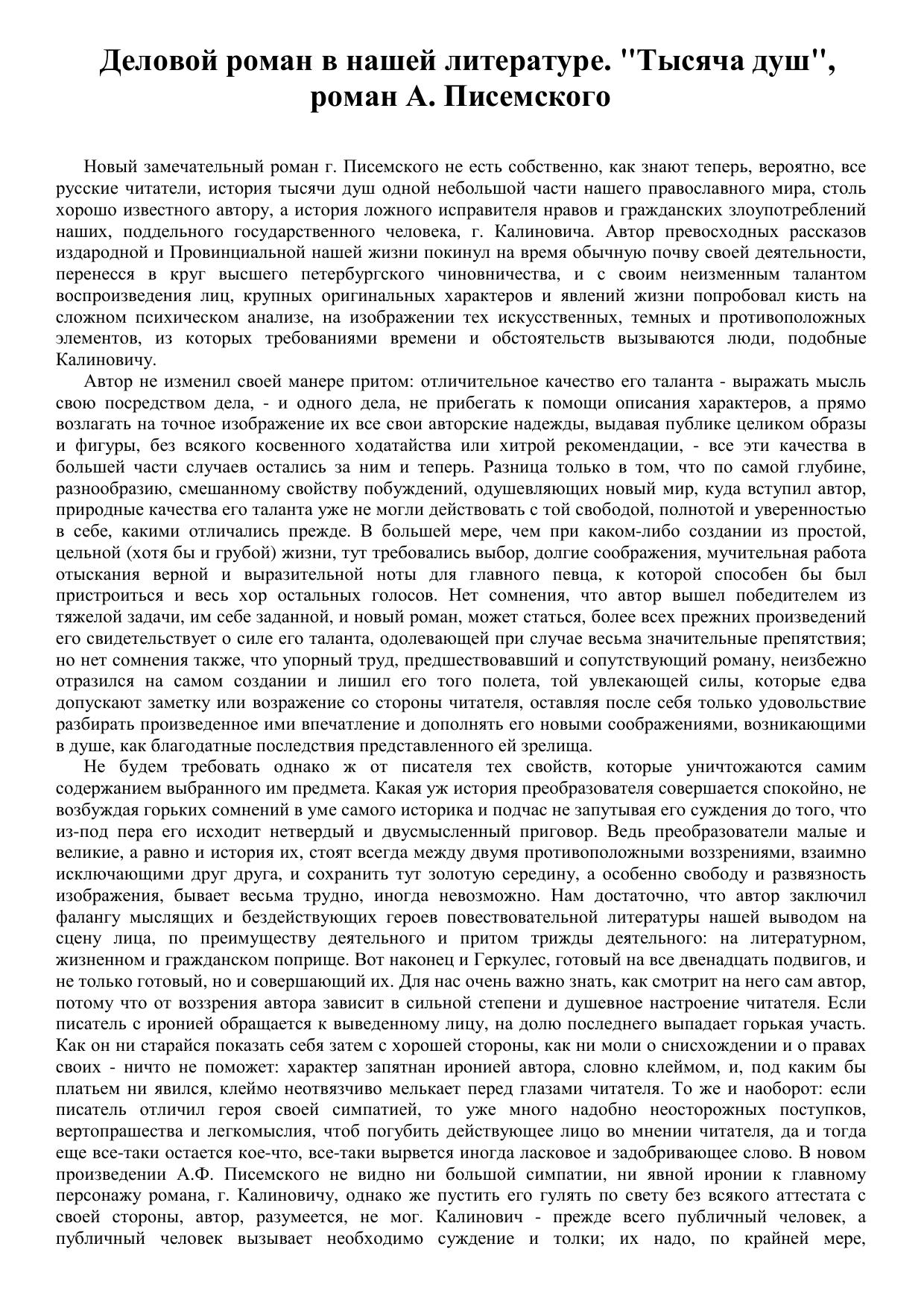 Деловой роман в нашей литературе. "Тысяча душ", роман А. Писемского