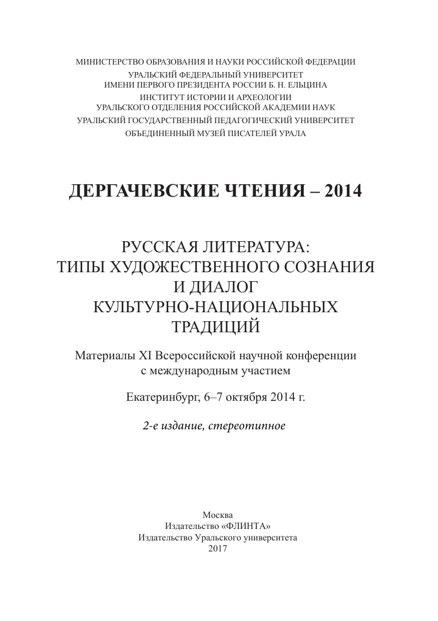 Дергачевские чтения-2014. Русская литература: типы художественного сознания и диалог культурных традиций