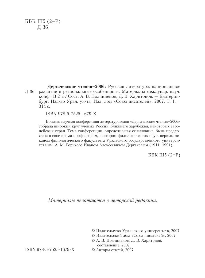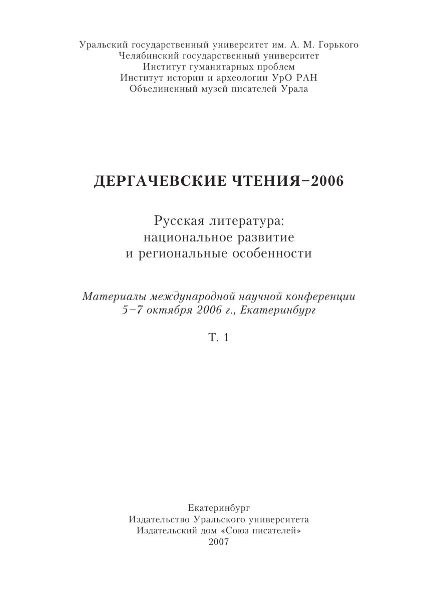 Дергачевские чтения-2006 Том 1 Русская литература: национальное развитие и региональные особенности