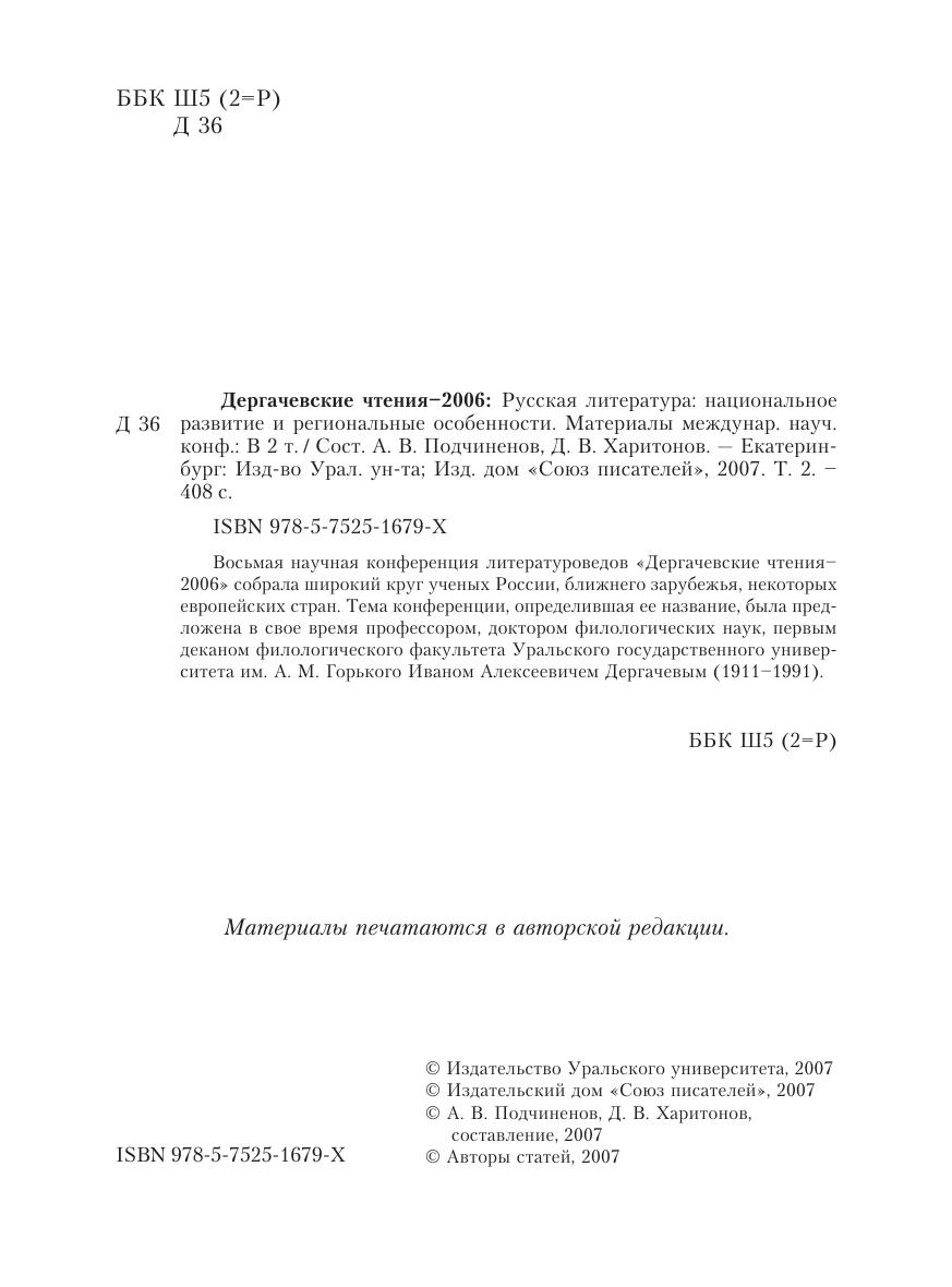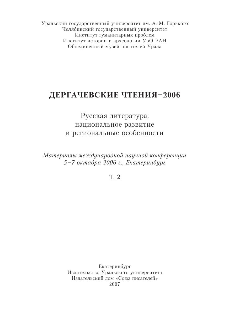 Дергачевские чтения-2006 Том 2 Русская литература: национальное развитие и региональные особенности