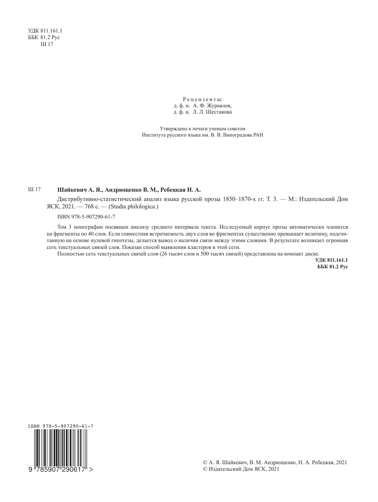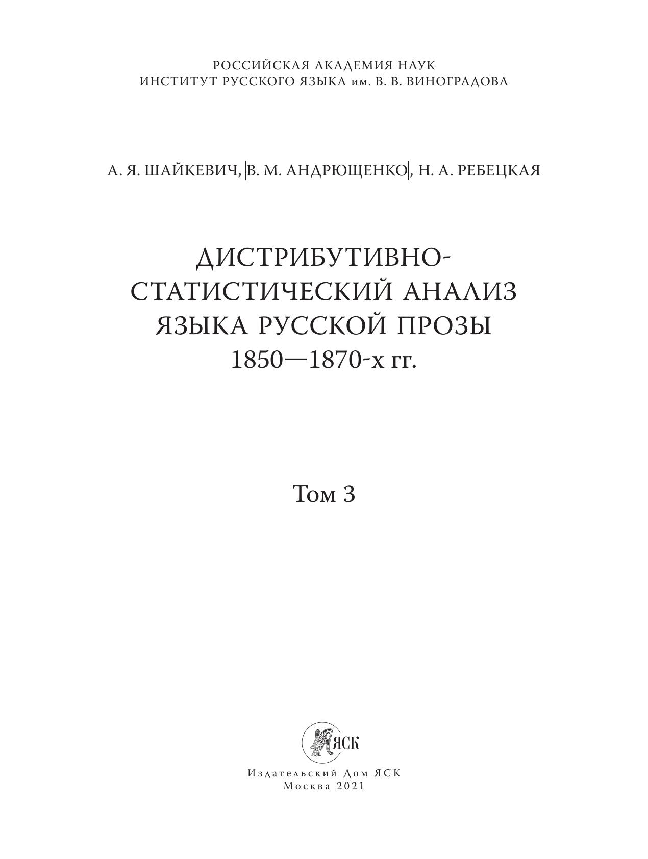 Дистрибутивно-статистический анализ языка русской прозы 1850–1870-х гг. Т. 3