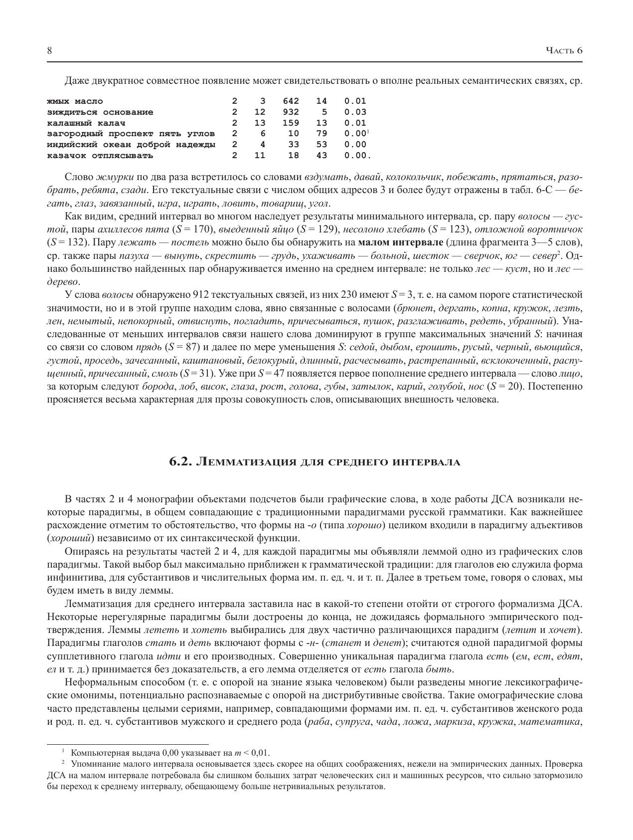 Том 3 монографии посвящен анализу среднего интервала текста. Исследуемый корпус прозы автоматически членится на фрагменты по 40 слов. Если совместная встречаемость двух слов во фрагментах существенно превышает величину, подсчитанную на основе нулевой гипотезы, делается вывод о наличии связи между этими словами. В результате возникает огромная сеть текстуальных связей слов. Показан способ выявления кластеров в этой сети. Полностью сеть текстуальных связей слов (26 тысяч слов и 500 тысяч связей) представлена на компакт диске.