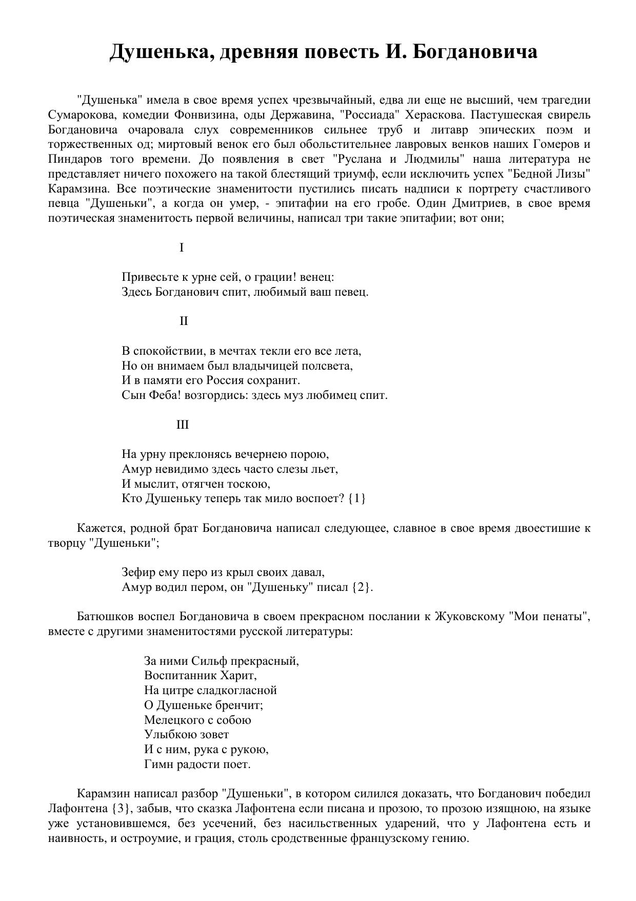 Душенька, древняя повесть И. Богдановича