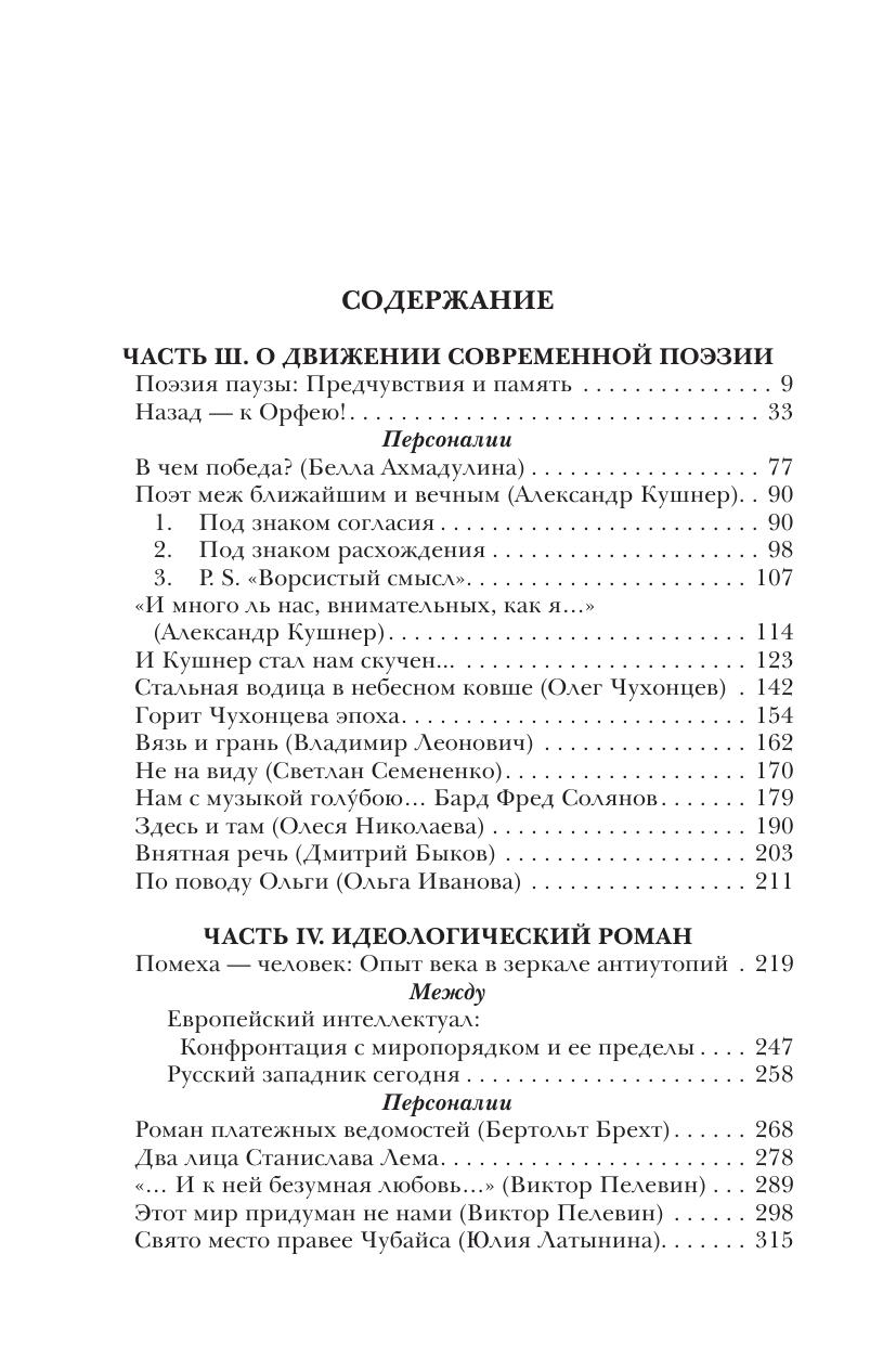 В двухтомнике представлен литературно-критический анализ движения отечественной поэзии и прозы последних четырех десятилетий в постоянном сопоставлении и соотнесении с тенденциями и с классическими именами XIX - первой половины XX в., в числе которых для автора оказались определяющими или особо значимыми Пушкин, Лермонтов, Гоголь, Достоевский, Вл. Соловьев, Случевский, Блок, Платонов и Заболоцкий, - мысли о тех или иных гранях их творчества вылились в самостоятельные изыскания. Среди литераторов-современников в кругозоре автора центральное положение занимают прозаики Андрей Битов и Владимир Маканин, поэты Александр Кушнер и Олег Чухонцев. В посвященных современности главах обобщающего характера немало места уделено жесткой литературной полемике. Последние два раздела второго тома отражают устойчивый интерес автора к воплощению социально-идеологических тем в специфических литературных жанрах (раздел "Идеологический роман"), а также к современному состоянию филологической науки и стиховедения (раздел "Филология и филологи").