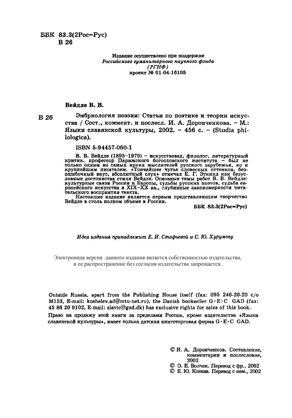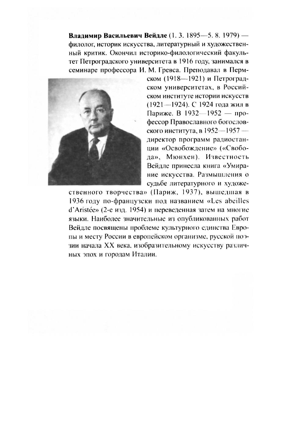 В. В. Вейдле (1895–1979) – искусствовед, филолог, литературный критик, профессор Парижского богословского института – был не только одним из самых ярких мыслителей русского зарубежья, но и крупнейшим писателем. «Тончайшее чутье словесных оттенков, безошибочный вкус, абсолютный слух» отмечал Е. Г. Эткинд как безусловные достоинства стиля Вейдле. Основные темы работ В. В. Вейдле: культурные связи России и Европы, судьбы русских поэтов, судьба европейского искусства в XIX-XX вв., глубинные закономерности читательского восприятия текста. Настоящее издание является первым представляющим творчество Вейдле в столь полном объеме в России.