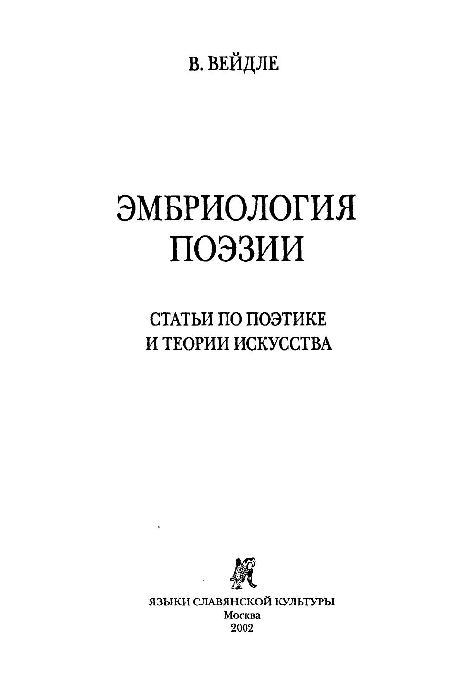 Эмбриология поэзии: Статьи по поэтике и теории искусства