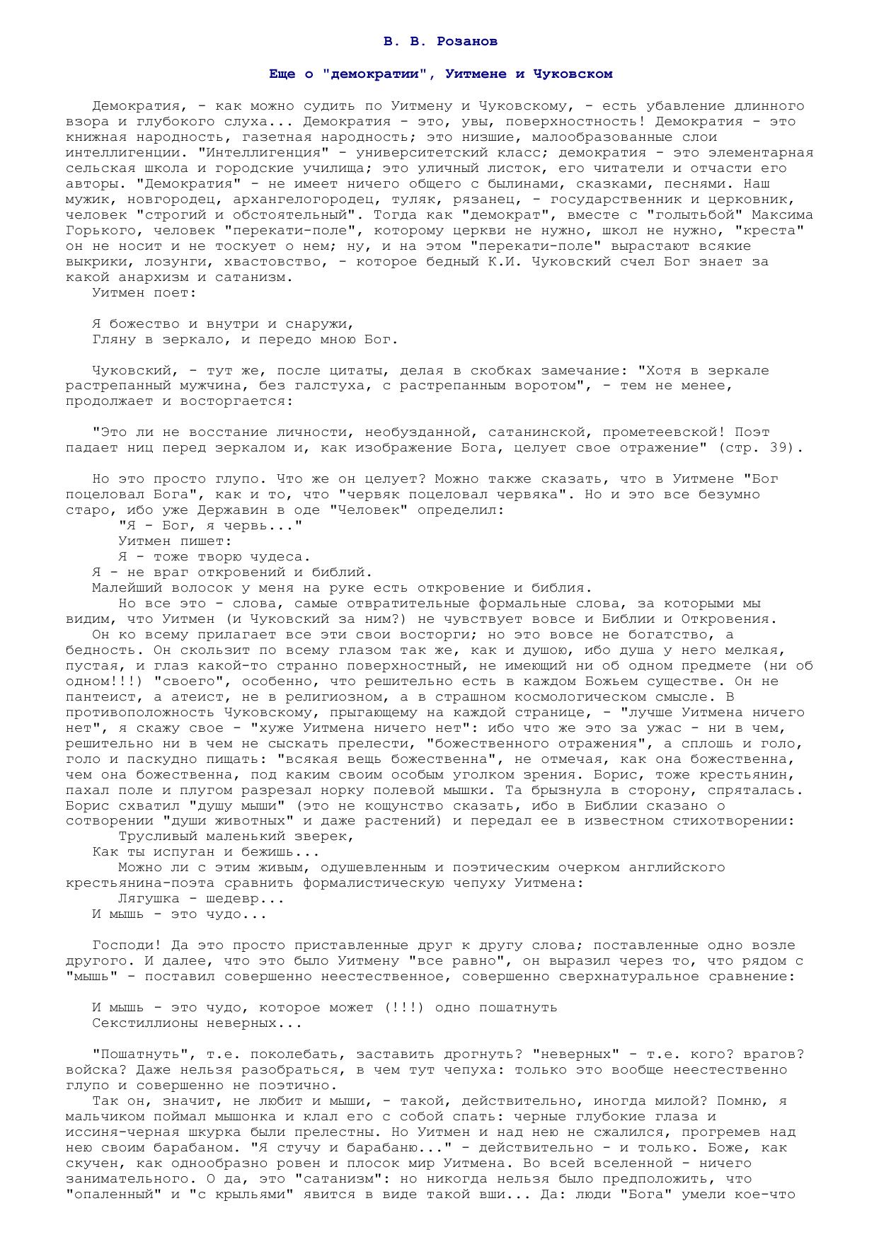 Еще о "демократии" Уитмене и Чуковском
