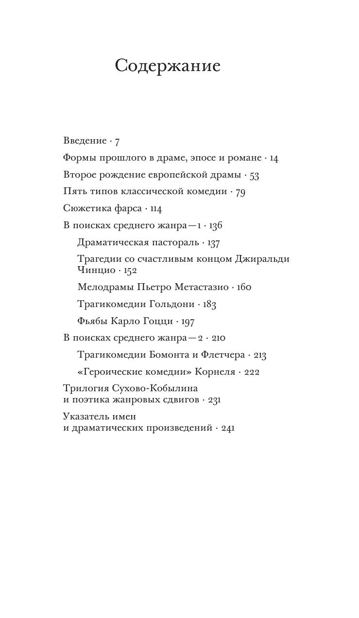 В монографии исследуются пути, которые проходит драма от эпохи «второго рождения» в средневековой литургии и народном празднике до наиболее значимых моментов жанровых сдвигов, развилок, тупиков. Материалом монографии являются в основном жанры, тяготеющие к комическому регистру (комедия, фарс, трагикомедия). Среди главных тем: типология эпических и драматических жанров в европейской литературе классического периода, выстраиваемая на основе категории художественного времени, типология классической европейской комедии, выстраиваемая на основе универсального сюжетного схематизма, генезис литургической драмы, сюжетный инвариант французского средневекового фарса, жанровая специфика трагикомедии