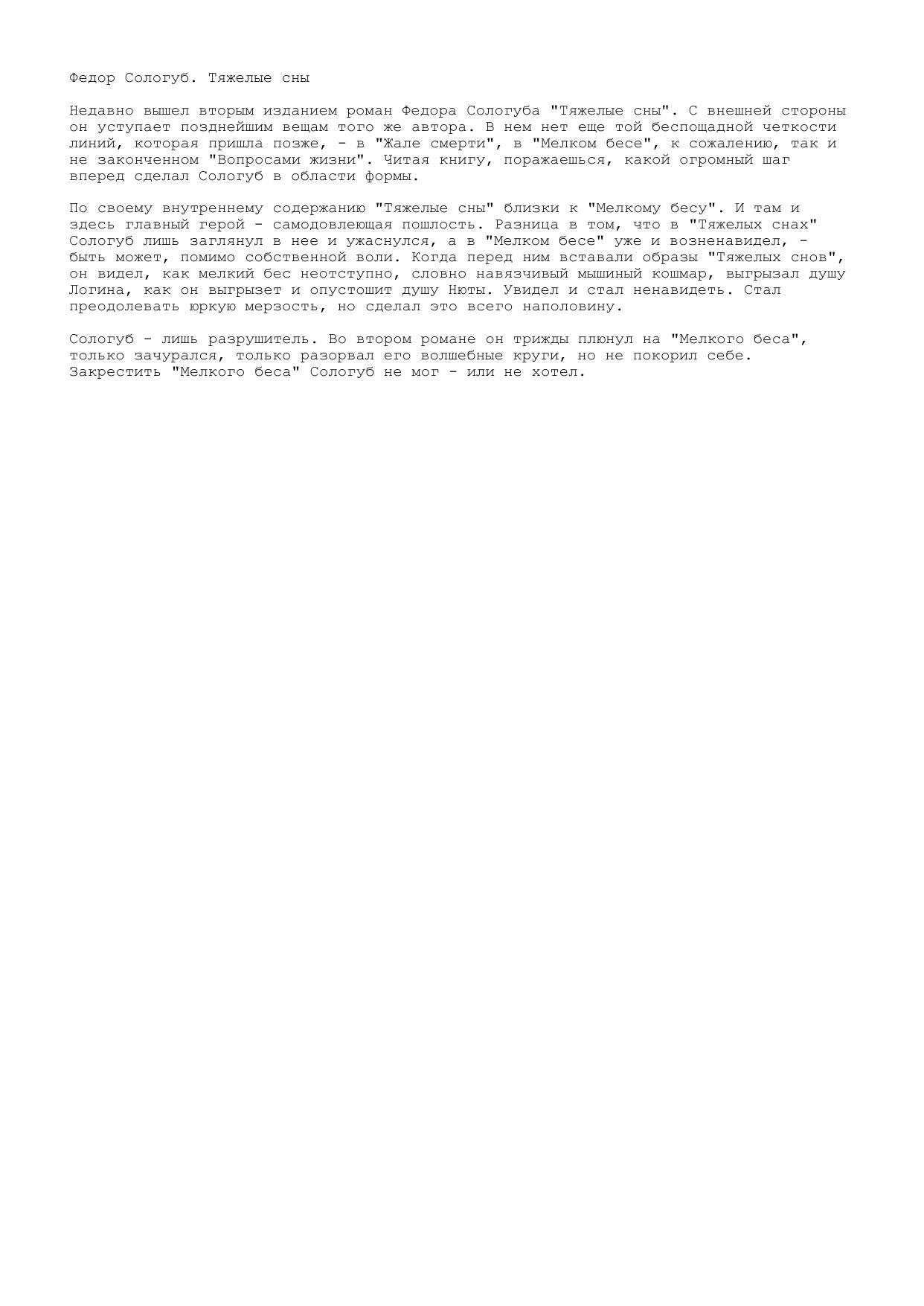 Федор Сологуб. Тяжелые сны