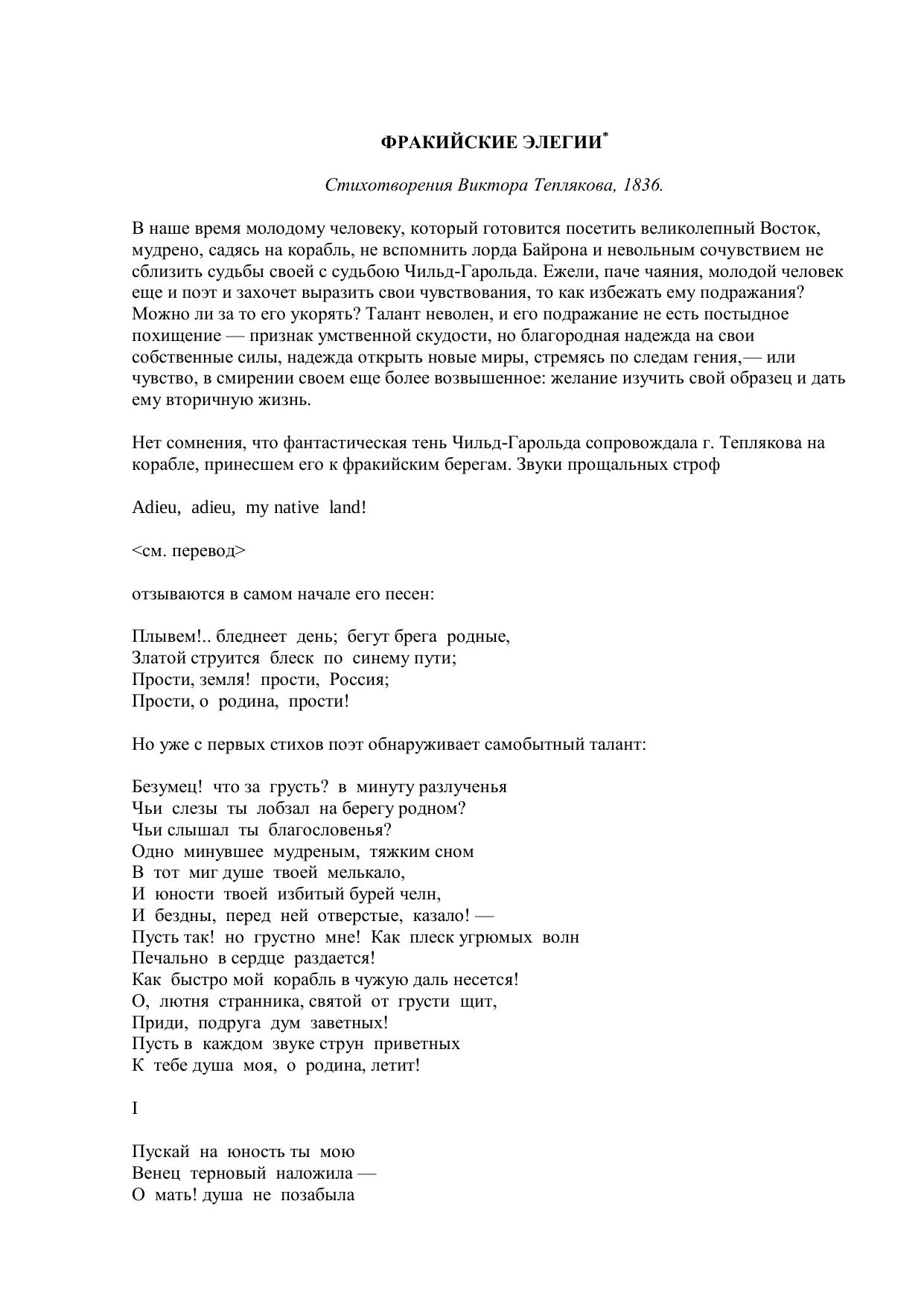Фракийские элегии: Стихотворения Виктора Теплякова