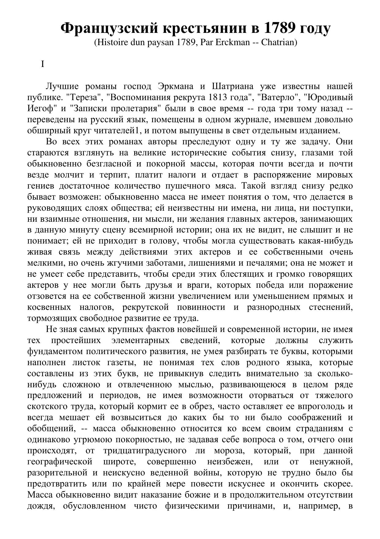 Французский крестьянин в 1789 году (Histoire dun paysan 1789, Par Erckman - Chatrian)