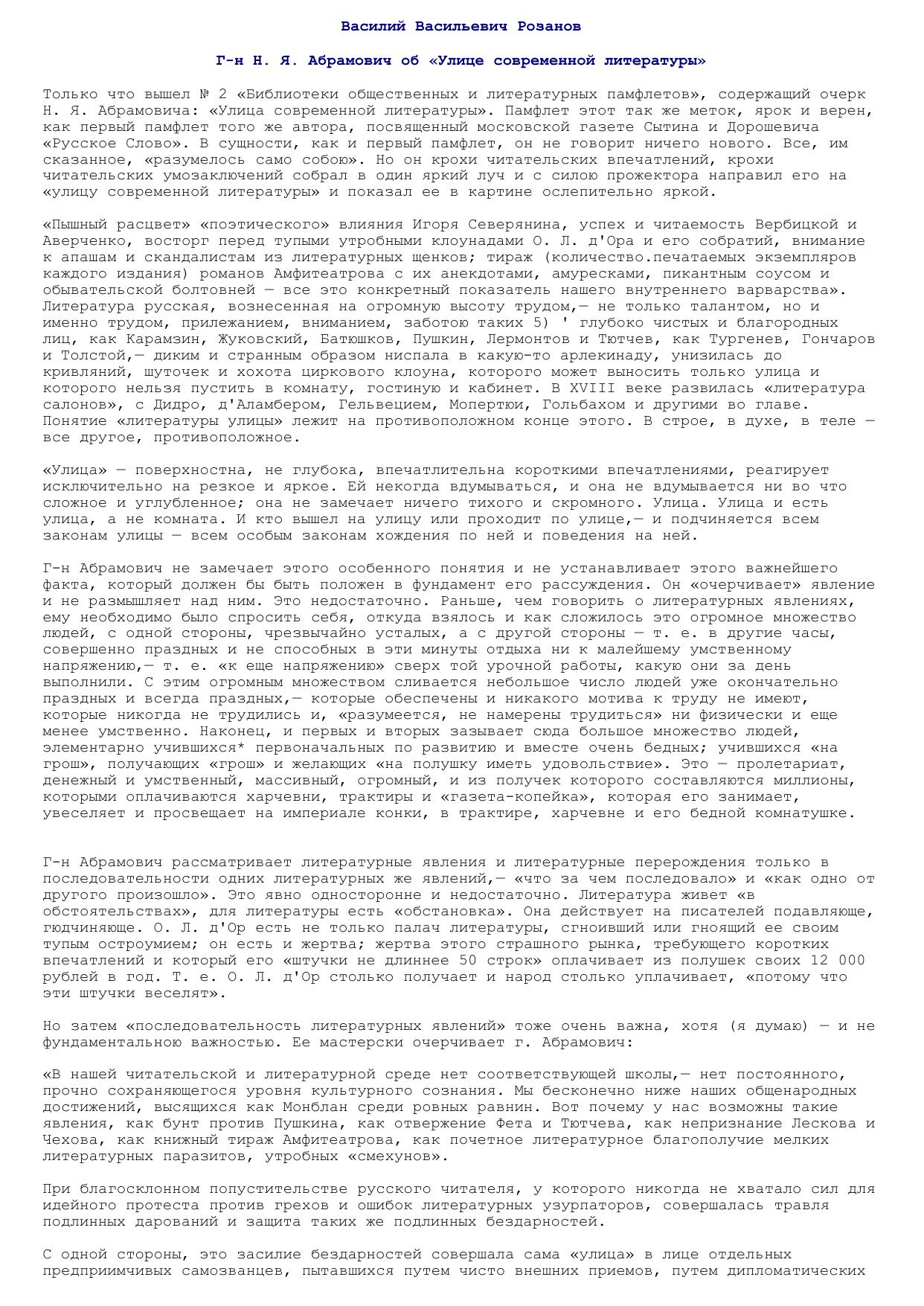 Г-н Н.Я.Абрамович об "Улице современной литературы"