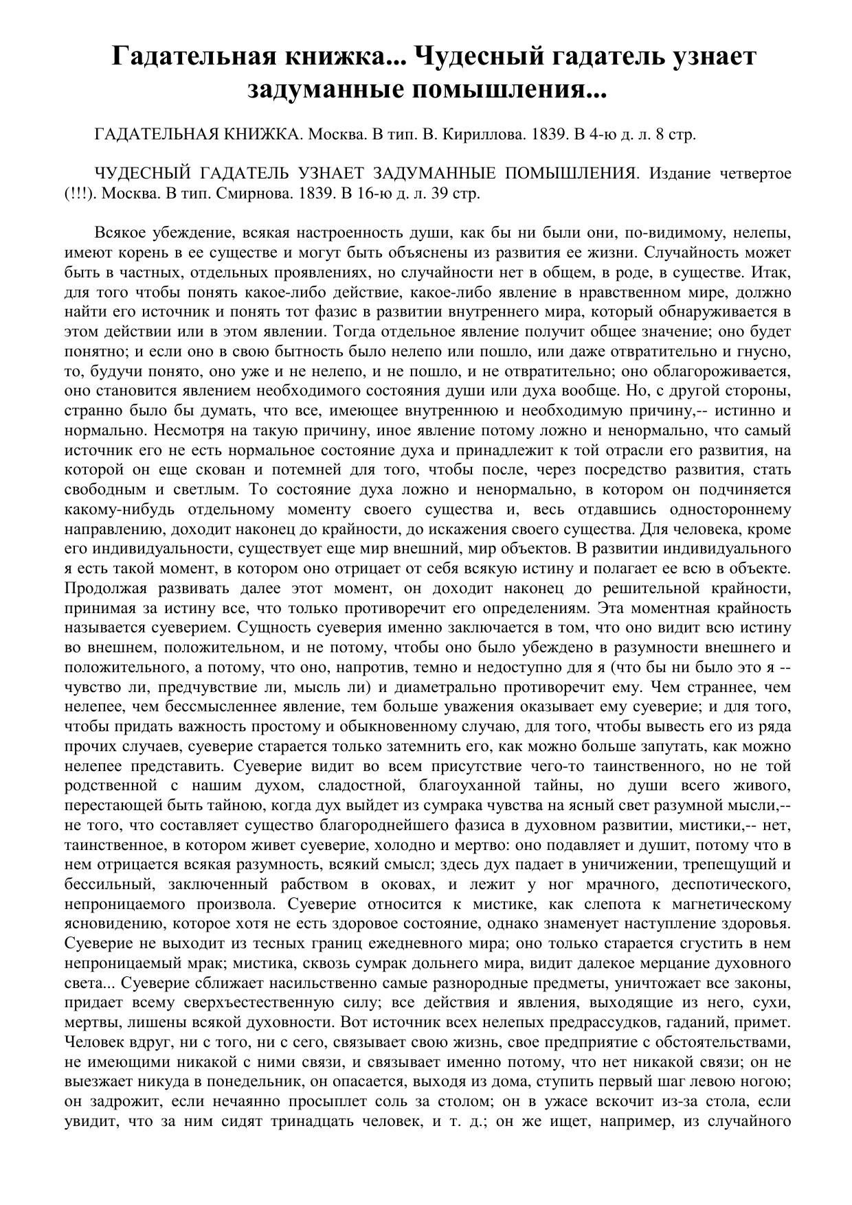 Гадательная книжка... Чудесный гадатель узнает задуманные помышления...