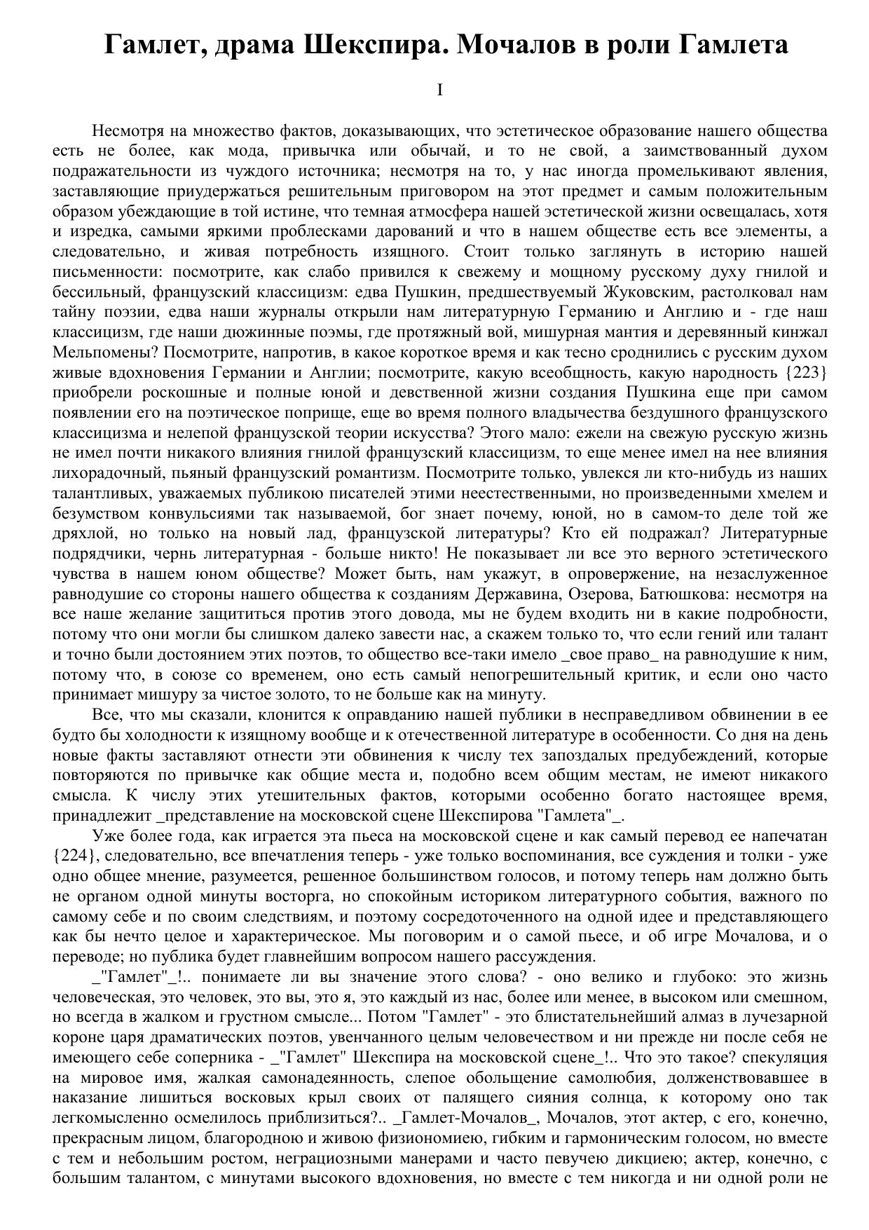 Гамлет. Драма Шекспира. Мочалов в роли Гамлета (цикл статей)